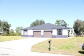 Gorgeous 3-bedroom,2-bath duplex with a 1-car garage,built in 2020 and available for rent in desirable Lehigh Acres. This modern home offers a private yard and an excellent location—just minutes from SR-82,Daniels Blvd,Colonial Blvd,and only 10 minutes to I-75. Enjoy granite countertops and tile flooring throughout,a spacious kitchen with a large peninsula,stainless-steel appliances (including a brand-new dishwasher),and an in-unit washer and dryer. Thoughtful upgrades include rainfall showerheads,tray ceilings in the great room and primary bedroom,a walk-in closet,modern LED lighting,and a smart garage door opener. Relax in the large open-air lanai overlooking the backyard—perfect for outdoor living. Lawn care,water softener maintenance,quarterly pest control,and quarterly A/C filter replacements are included,offering truly low-maintenance living.