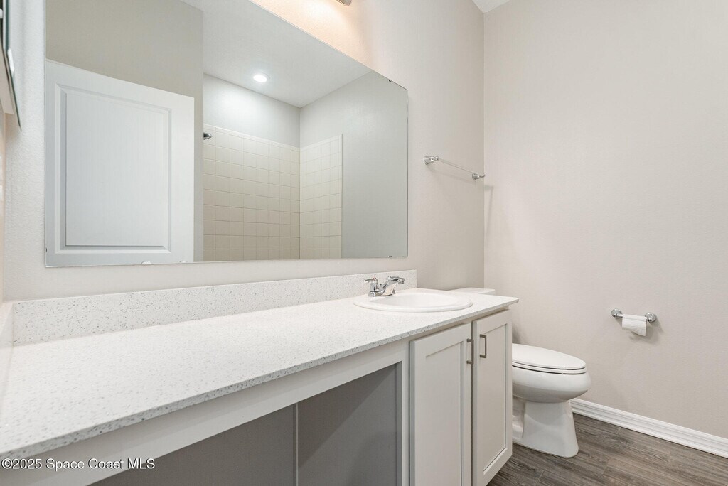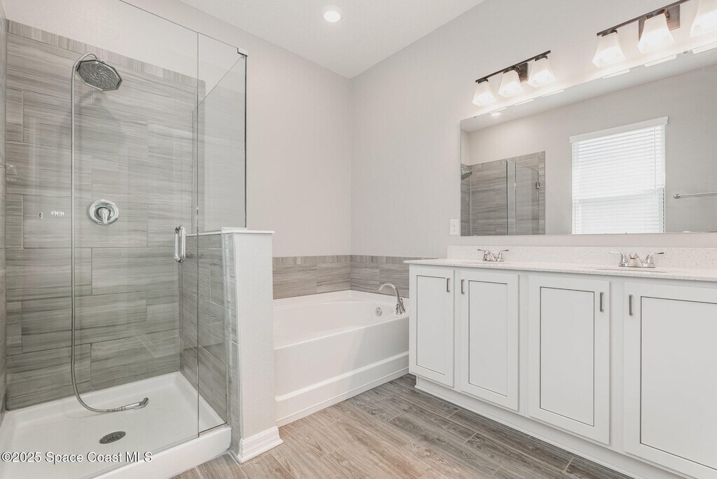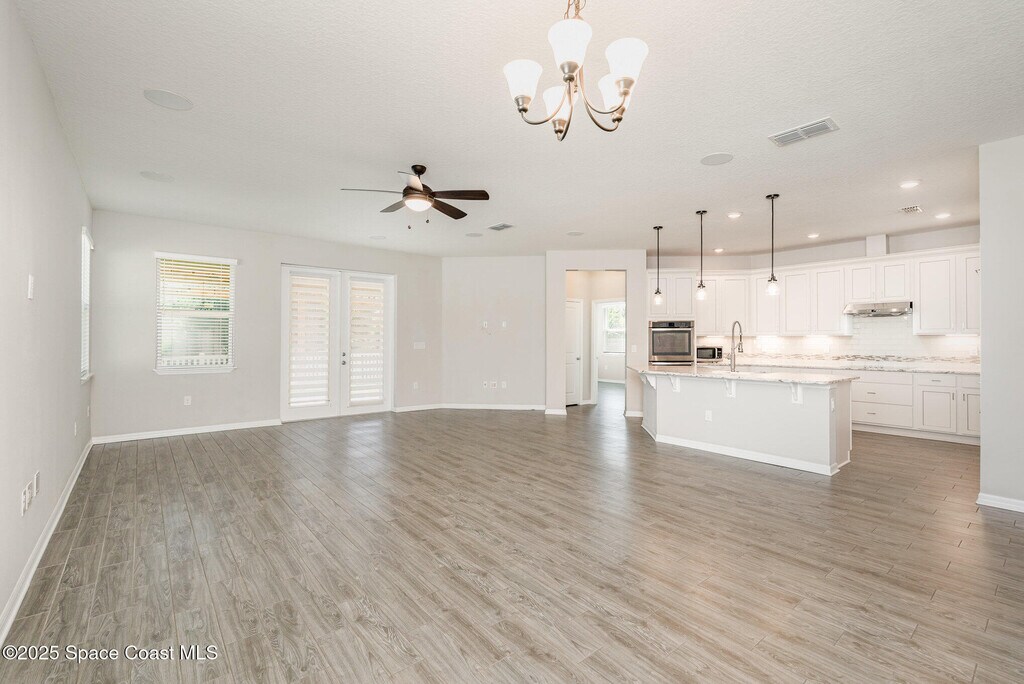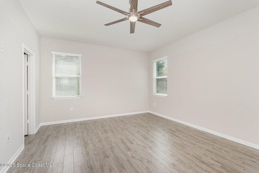 Tucked away on a quiet cul-de-sac street,this inviting,upgraded home sits on a serene conservation lot w/a fenced backyard overlooking the peaceful preserves. Wood-look tile flooring spans throughout. Spacious living/dining areas feature surround sound & French doors opening to a breezy covered lanai & an extended arbored patio stretching out to the sizable,sunny backyard. The showcase island kitchen shines w/a large breakfast bar,modern quartz counters,SS appliances,double ovens,a flat cooktop,tile backsplash & pendant lighting. Relax in a generous primary suite w/a walk-in closet & stylish bath w/dual sinks & separate tub/shower. Two additional bdrms flank a tub/shower bath,with the 4th bdrm nearby. Lawn care,washer & dryer included! Location can't be beatclose to schools & the bustling Palm Bay Rd. corridor offering tons of shopping,restaurants,everyday conveniences & access to I-95.