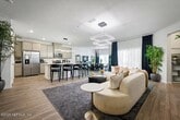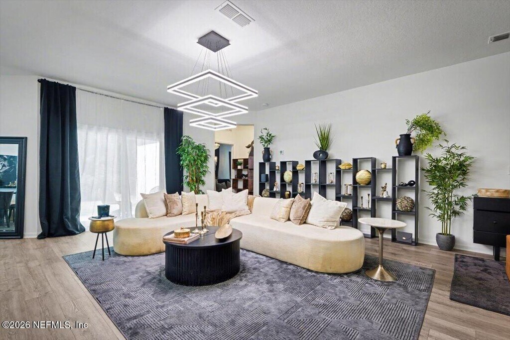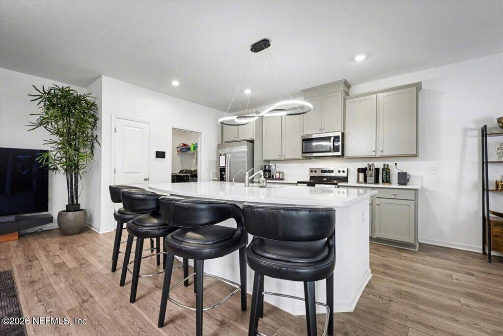With the welcoming curb appeal of this 4-bedroom,3-bathroom beauty is perfectly situated in North Jacksonville. The property sits on a cul-de-sac. Step from the welcome mat into an interior embrace that includes an open layout and stylish fixtures. The elegant kitchen features island with quartz countertops and stainless-steel appliances. Laminate and tile floors throughout the living areas and carpeted bedrooms. With ensuite bath and walk-in closet,the primary bedroom is designed for comfort. Additional bonus room or 4th bedroom located on the 2nd floor. The patio is ready for an afternoon outdoors where you can enjoy inspiring woodland views. Some homes you tour. This one you feel. MLS# 2137223