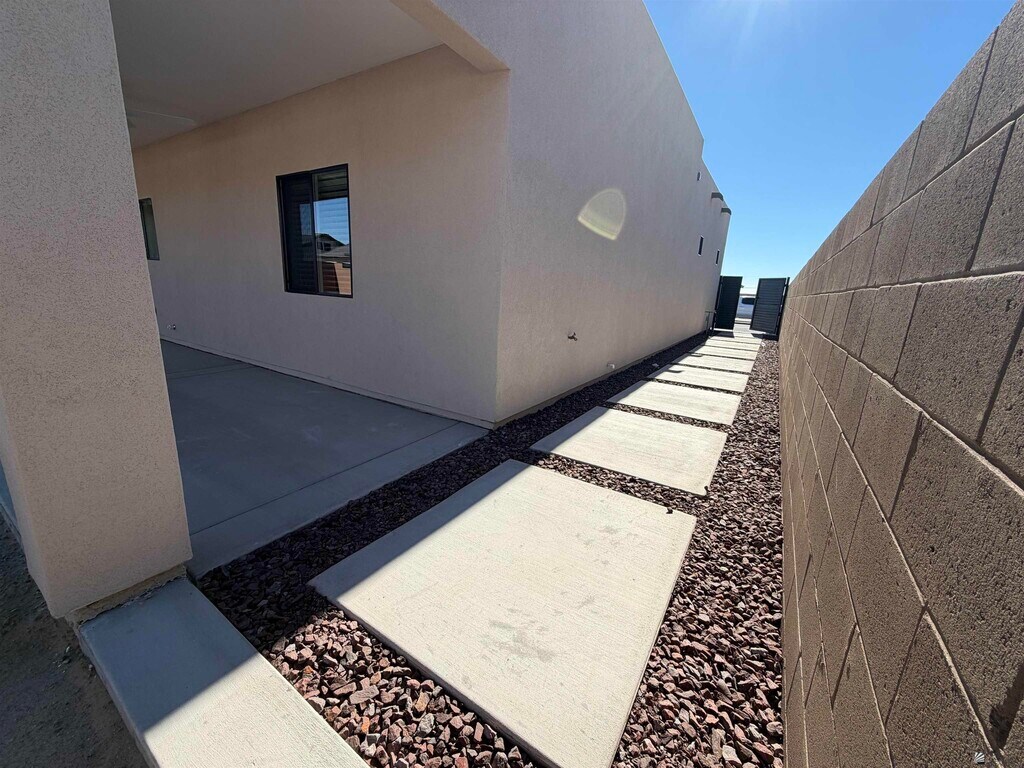 Be the first to move into this stunning 3 bedroom, 2 full bathroom custom new build offering privacy, comfort and modern living at its finest. This home features an open-concept split floor plan designed for added privacy, a two-car garage with modern access, a spacious walk-in closet in the primary suite, and a unique custom master bathroom with elevated finishes. Quartz countertops run throughout the entire home along with brand-new appliances, including a refrigerator. The property is a custom build with block fencing and privacy gates, completed front landscaping, and a cozy backyard perfect for gatherings and outdoor enjoyment. Outdoor fans provide comfort during warm Yuma evenings. This home offers a rare opportunity to live in a brand-new property with luxury touches, privacy features, and a thoughtful modern layout.