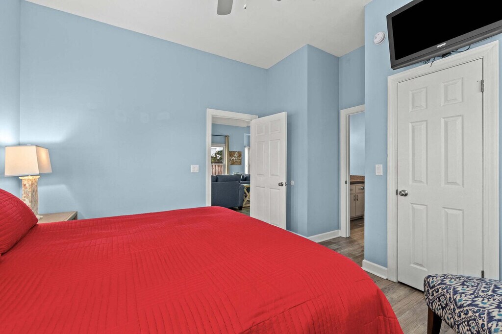 Find your vacation serenity at Serenity Now, a quaint 3-bedroom home located on the edge of Destin, just a short walk to the world’s most beautiful beaches. Situated in the Terra Cotta Terrace neighborhood, this home offers easy access to Scenic Highway 98, making it convenient to explore local restaurants, shopping, and activities. Enjoy the proximity to Kenny D’s, renowned for the best happy hour and Mahi sandwich in Destin. The property accommodates parking for up to two vehicles and includes a complimentary golf cart for your convenience. You will be amazed from the moment you walk into this home with its fun and inviting bohemian décor and perfect blue and tan color scheme, making it the superb vacation home. The modern and beachy home boasts natural light, creating an inviting and bright atmosphere. The living area features cozy couches next to the dining area and kitchen, providing plenty of space for your group to unwind after a long day in the sun. The fully equipped kitchen includes a fridge, stove, microwave, dishwasher, dishes, cookware, silverware, a standard coffee maker, Keurig, Crockpot, blender, toaster, and even children's cutlery and dinnerware. Enjoy coffee and breakfast with the family at the breakfast bar that seats four. Behind the kitchen, you'll find a full-sized washer and dryer, convenient for post-beach days or before you head home. The master bedroom features a King bed with a pop of red comforter, two large windows, and an attached en-suite bathroom. The bunk room offers queen over queen bunks with a twin trundle and a Smart TV. A conveniently located full bathroom is down the hall. Another bedroom includes a King bed, a Smart TV, and ample closet space. The delightful back patio offers two outdoor sofas and a propane grill, perfect for grilling burgers while enjoying the hot tub. Serenity Now is pet-friendly with a $200 pet fee for up to 2 dogs, payable before check-in. The property includes a FREE six-passenger golf cart for zipping around town or heading to the beach. However, the golf cart is not available for group bookings of guests 25 years or younger. Unfortunately, RV, trailer, or watercraft parking is not permitted at the home. Located in the Terra Cotta Terrace neighborhood, you are super close to the Destin Commons, offering plenty of shopping, entertainment, and restaurants. The Silver Sands Outlets are just a few minutes' drive east, providing more shopping, dining options, and a play area for kids. With plenty of public beach accesses nearby, you can easily walk or take the golf cart to the sugar-white sandy beaches and emerald waters. The town is easy to navigate, with most attractions directly off the main road. Guests can enter the home with easy coded entry, making check-in a breeze without the need to fumble for keys. Check-in time is 4 pm, and checkout time is 10 am. The golf cart is not permitted for student groups under age 25 and cannot be driven by anyone under age 25. Spring break or student groups (under age 25) must notify us before booking as additional requirements apply. All student guests must sign a student agreement and bring $100 cash per person at check-in for a refundable security deposit. If police or local authorities are called and eviction is necessary, the nightly rate will be applied depending on the issue. Any law enforcement calls may result in the loss of the entire security deposit. Pets are permitted only if house-trained, and you are expected to clean up after your pet, or a $50 fee will be assessed. Emotional Support Animals are subject to the pet fee, while ADA Registered Service Animals are exempt. Impersonating an ADA Service animal is a crime in our state. Any cleanup of bodily fluids will result in additional cleaning and sanitation charges. Do not rearrange furniture in the home. Renter must promptly disclose any known or suspected issues with the home. Any issues found after checkout that were not disclosed may result in charges. Violating any house rules may result in the loss of the security deposit. [SI]