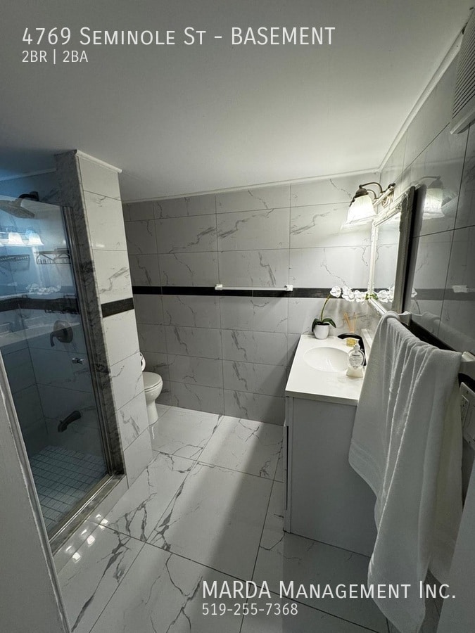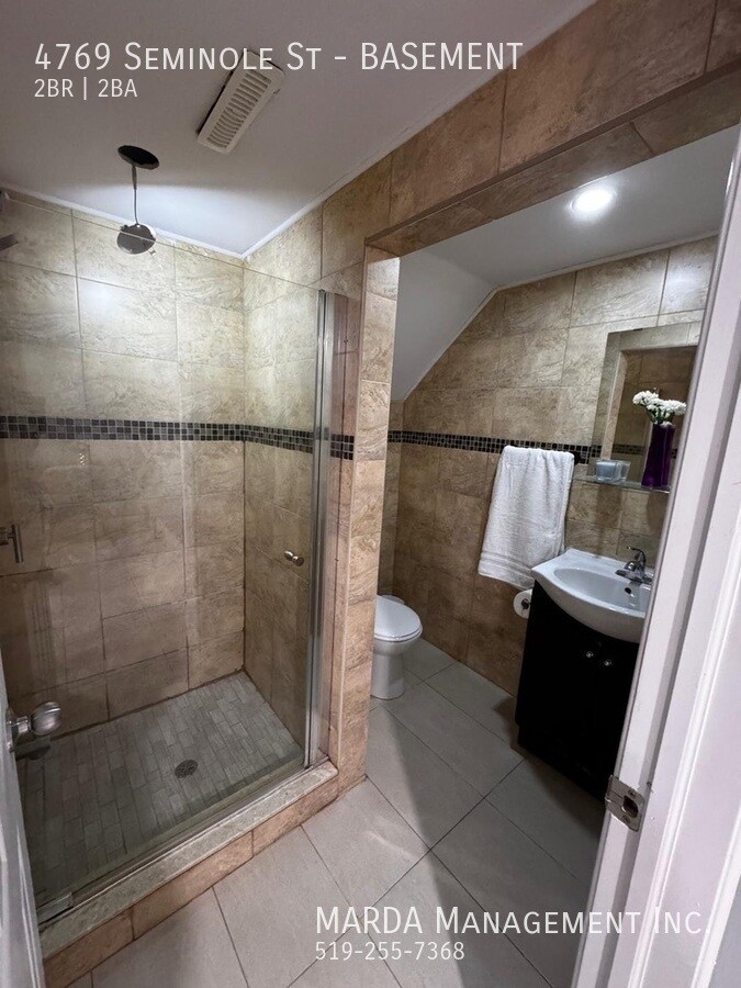Welcome to 4769 Seminole Basement, a spacious and updated 2 bedroom, 2 full bathroom unit offering a functional layout and modern finishes throughout. This unit features a newly renovated kitchen equipped with newer stainless steel appliances, including a fridge and stove. The living room and kitchen areas have tile flooring, while the bedrooms feature laminate flooring, creating a clean and comfortable living space. Both bedrooms are large and include closets, providing ample storage. Each of the two full bathrooms includes a stand-up shower, vanity, and toilet, offering added convenience and privacy. The unit also includes an in-suite washer and dryer and is equipped with central air for year-round comfort. Tenant responsible for 40% of hydro, water, and gas, lawn maintenance and snow removal. One-year minimum lease. First and last months rent and a credit check are required. Call MARDA MANAGEMENT today at or email to schedule your viewing. Fenced Back Yard Internet Included No Smoking Allowed Pet Friendly Shared Back Yard