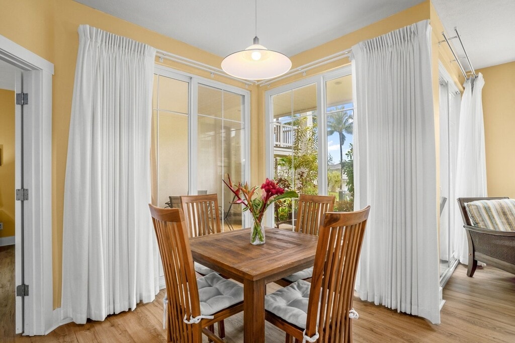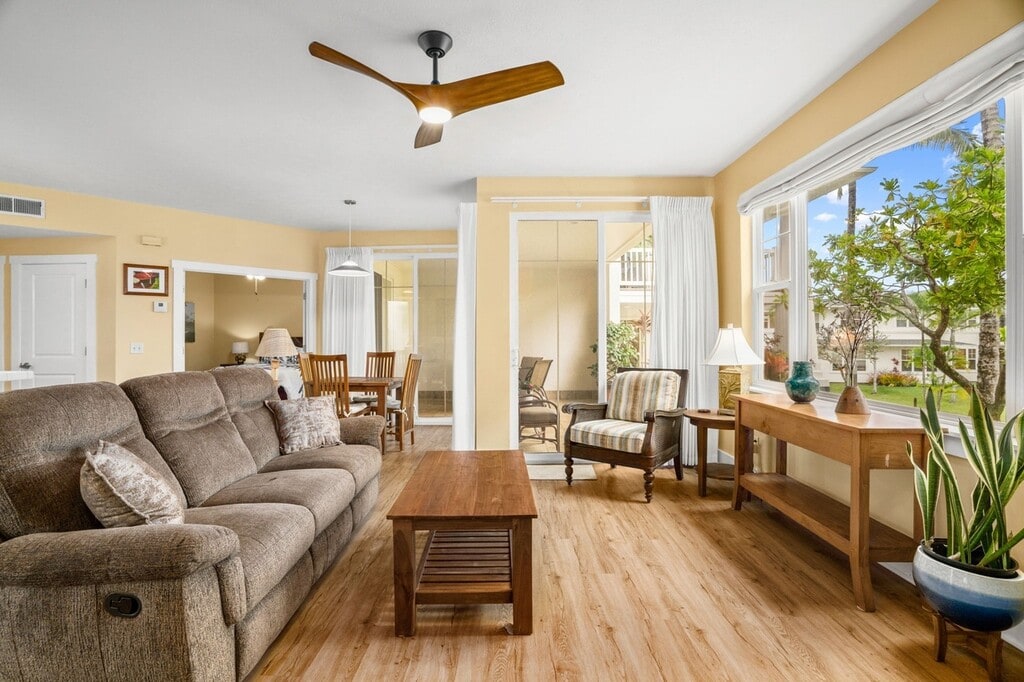 harming 2 Bed / 2 Bath Condo in Plantation at Princeville Discover island living at its best in this beautifully maintained and well-appointed 2-bedroom, 2-bathroom condo located in the heart of the Plantation at Princeville. This top-tier unit offers a blend of comfort, elegance, and resort-style amenities in one of Kauai’s most desirable settings. Interior Features: ~1,153 sq ft of indoor living space, thoughtfully laid out for functionality and style Crisp, clean finishes with updated flooring (luxury vinyl plank or similar) Bright, open living area flowing into dining and kitchen Private lanai overlooking interior courtyard / waterfall features Full kitchen with modern appliances, cabinetry, and counter space Two full baths with quality finishes Furnishing option (turn-key) may be available depending on agreement Community & Amenities: Access to resort-style common areas: pool, spa/hot tub, BBQ & seating areas, landscaped grounds Clubhouse with fitness center, resident manager, and gathering spaces Secure parking (attached garage or covered / assigned) Quiet, interior-facing location within the complex — removed from main traffic Walking distance to shopping center, nearby beaches, hiking paths, and the scenic bike path