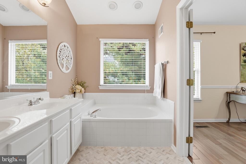 Welcome to this gorgeous, move-in ready brick townhome. The main level is bright and open, with beautiful modern hardwood floors and plenty of natural light. The kitchen stands out with its granite countertops, generous cabinet space, and island seating — all flowing seamlessly into the family room, so you can cook, connect, and entertain with ease. Just off the family room, you’ll find a large Trex deck — the perfect spot for morning coffee, dinner outside, or hosting friends. Upstairs, the primary suite is spacious and private, with a soaking tub, walk-in shower, and double vanity. Two additional bedrooms and a full bath offer plenty of space for family, guests, or a home office. Downstairs, the finished walkout basement has a cozy fireplace and opens to a fully fenced backyard — great for relaxing, or play. There's also a two-car garage with extra storage space. This home is in a community that truly offers it all — multiple pools, fitness centers, tennis and pickleball courts, playgrounds, and more. Plus, there's always something happening: seasonal festivals, movie nights, pool parties, and events that bring neighbors together. It’s not just a home — it’s a lifestyle.