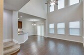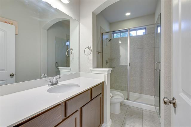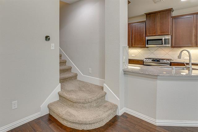 GREAT 2 story 3 bedroom, 3.5 bath Berkshire Place townhome in sought after E. Plano. Open floorplan w spacious family room that features a 2 story ceiling with lots of natural light & wood floor. Stylish kitchen is open to living area, has countertop bar area & features granite countertops, 5 burner Samsung gas cooktop & oven, Samsung dishwasher. Half bath downstairs for xtra convenience. Samsung stack washer & dryer in small utility area. Downstairs bedroom has ensuite bath. Upstairs master bedroom with ensuite bath with double sinks, garden tub & separate shower, large walk-in closet. Two loft areas, 3rd bedroom, and 3rd full bath also upstairs. Nest doorbell,Echobee thermostat,MyQ garage door opener, automated exterior lights and more. Private small fenced 13' x 26' backyard w patio is maintained by HOA.