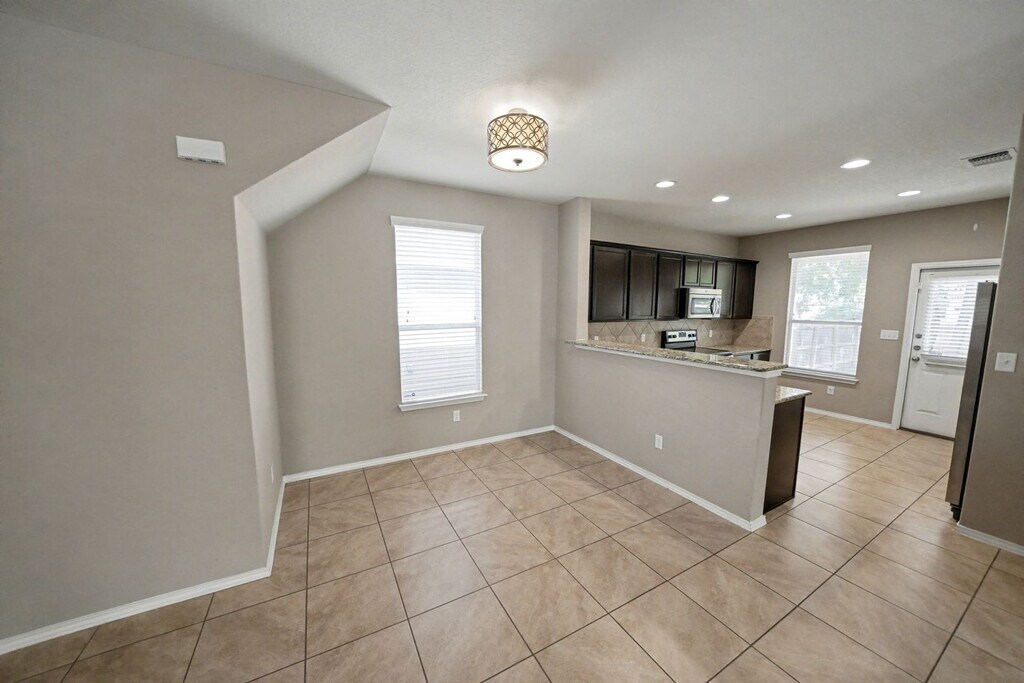 Located in the sought-after Kensington Ranch community of Selma, this stunning 4-bedroom, 3-bath residence combines style, comfort, and convenience. The welcoming foyer leads into a spacious living area highlighted by ceramic tile and carpet on the main level and abundant natural light from the large windows. The open layout flows effortlessly into the kitchen, creating an inviting space for everyday living and entertaining alike. The kitchen is designed with function and style in mind-featuring ample cabinet storage, granite counters, a sleek tile backsplash, and coordinating stainless steel appliances that will come with a refrigerator. A downstairs bedroom with an adjacent full bath makes an ideal setup for guests, extended family, or a private home office. Upstairs, the primary suite offers a relaxing retreat with dual sinks, an oversized walk-in shower, and a roomy walk-in closet. Two additional bedrooms and a versatile game room provide plenty of space for family, hobbies, or study. Each bedroom includes a ceiling fan for added comfort. Step outside to enjoy a covered patio that overlooks the fenced backyard, a perfect spot for weekend barbecues or winding down in the evenings. With its proximity to Randolph Air Force Base, I-35, and Loop 1604, this property offers both convenience and community. Zoned to a top-rated school district, this home is move-in ready and waiting for its new owner.