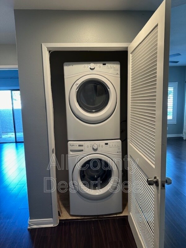 This charming 2-bedroom, 2-bathroom condo offers modern upgrades and comfortable living in a secure, gated community. Situated on the lower level, the unit features an open floorplan and near by parking. The well-appointed kitchen boasts updated appliances, sleek countertops, and ample cabinet space, perfect for both everyday meals and entertaining. Both bedrooms are generously sized, with the master suite offering a private bathroom and ample closet space. The second bedroom is versatile, ideal for guests or a home office. The unit also has full sized washer and dryer included for your convenience. Step outside to your own private patio, a tranquil retreat where you can enjoy your morning coffee or unwind after a long day. Additionally, the condo includes a 1-car detached garage. Residents of this community have access to a sparkling community pool, perfect for cooling off on hot days. With its prime location, upgraded features and excellent amenities, this condo won't last.