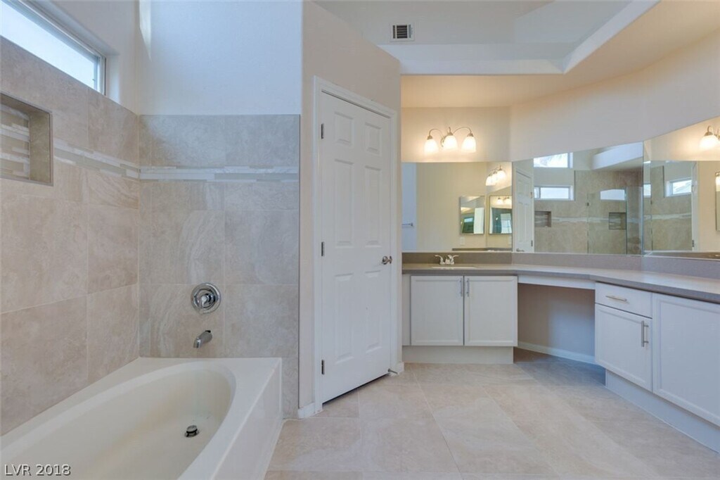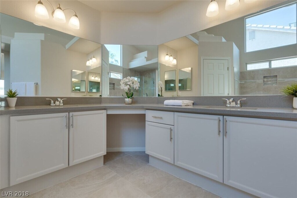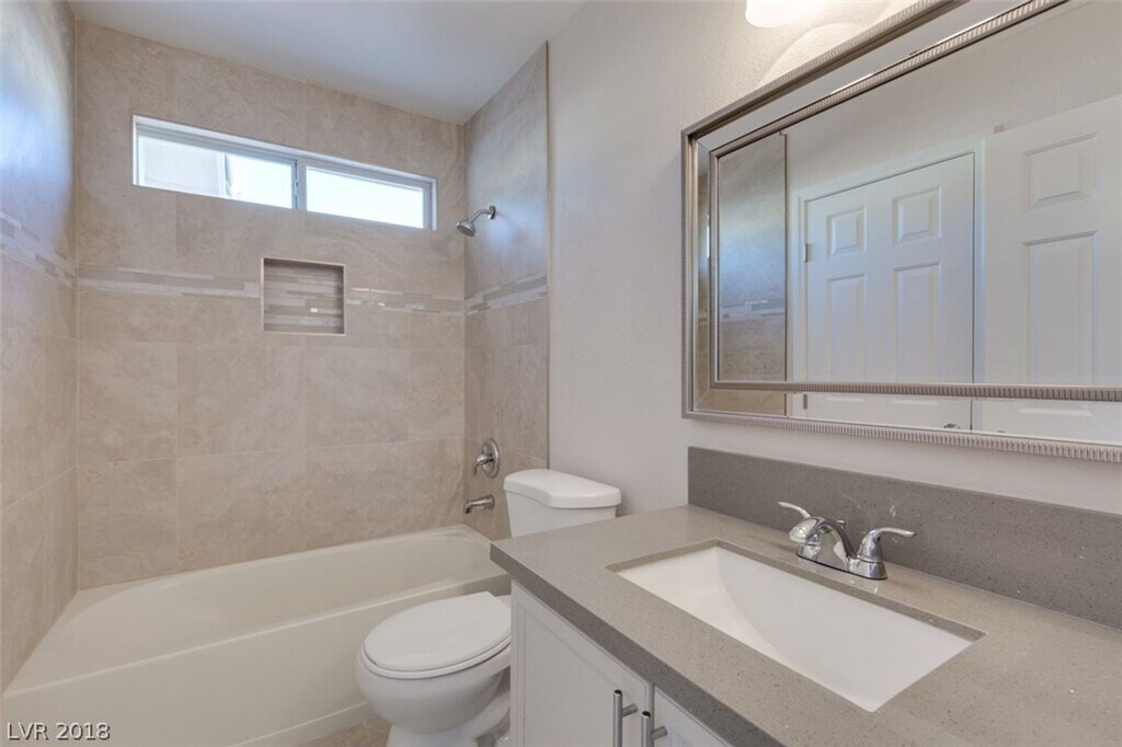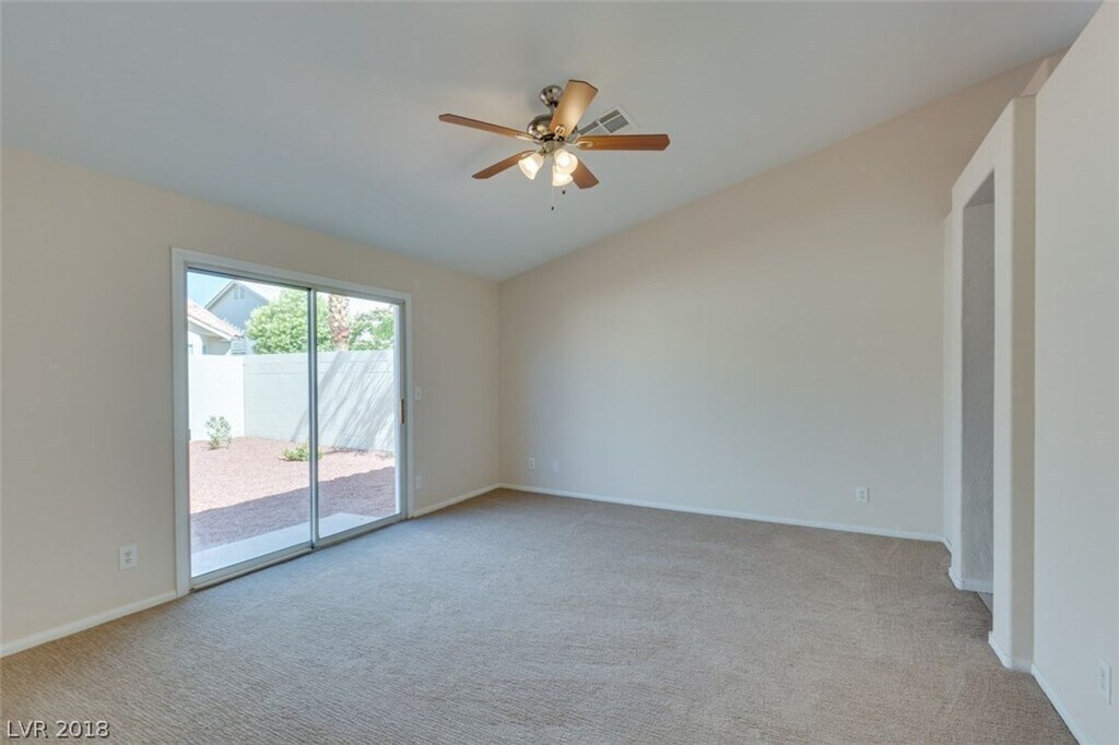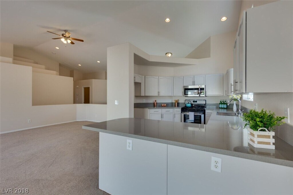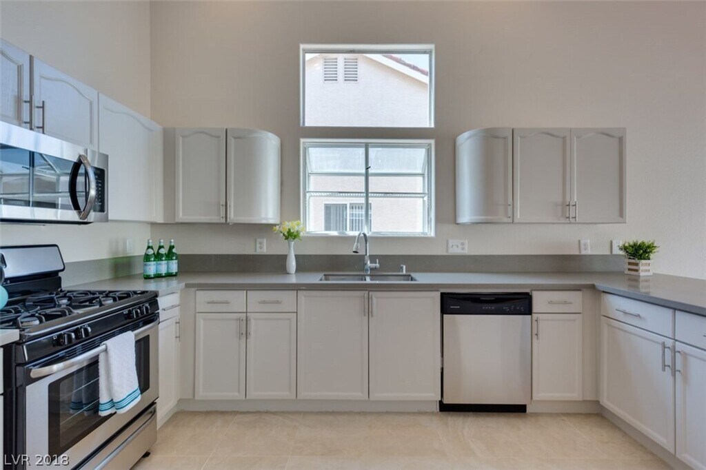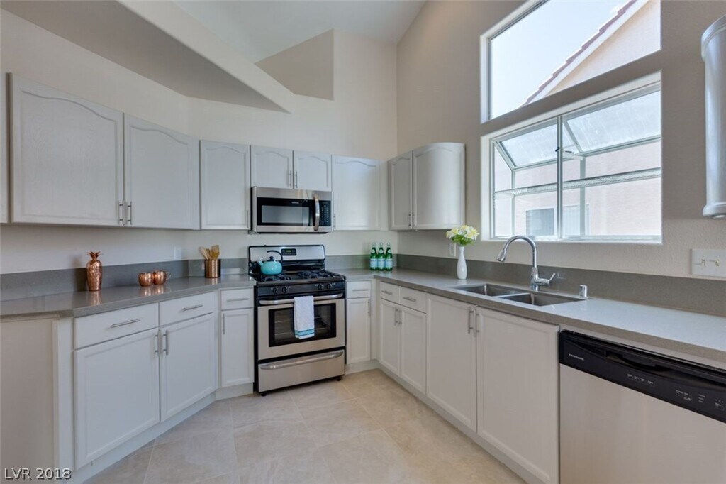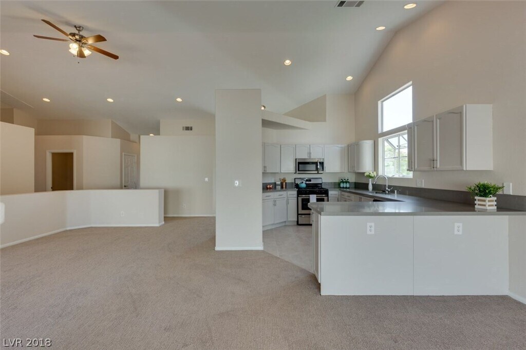 Welcome to this unique 4 bedroom, 3 bathroom single-story home located in a guard-gated community in Las Vegas, NV. This charming property features a spacious 2 car garage, stainless steel appliances, vaulted ceilings, and a cozy fireplace. Enjoy the convenience of walk-in closets, updated modern kitchen counters, and upgraded bathroom tile. The master bathroom boasts a luxurious bath tub and additional upgrades. Residents of this community have access to BBQ areas, a basketball court, and a park for outdoor enjoyment. With desert landscaping and ceiling fans throughout, this home offers a comfortable and stylish living space for its lucky occupants.