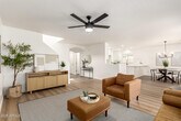 Start living TODAY in this tastefully renovated home! Conveniently located right off the 10. Get back into Phoenix quickly or into the shopping in Casa Grande just as quick! Brand new kitchen cabinets,luxury vinyl plank flooring,tons of natural light,and fresh neutral paint throughout. The upgraded kitchen offers recessed lighting,42 inch white shaker cabinets,a pantry,stainless steel appliances,quartz counters,and a breakfast bar. Head upstairs to find a HUGE loft that provides flexible space for a TV area or additional lounge zone. The primary bedroom has plush carpet,a private ensuite with dual sinks,and a walk-in closet. Finally,the spacious backyard,complete with a covered patio,is ideal for relaxing evenings. What's not to like? This gem is ready to move in and enjoy!