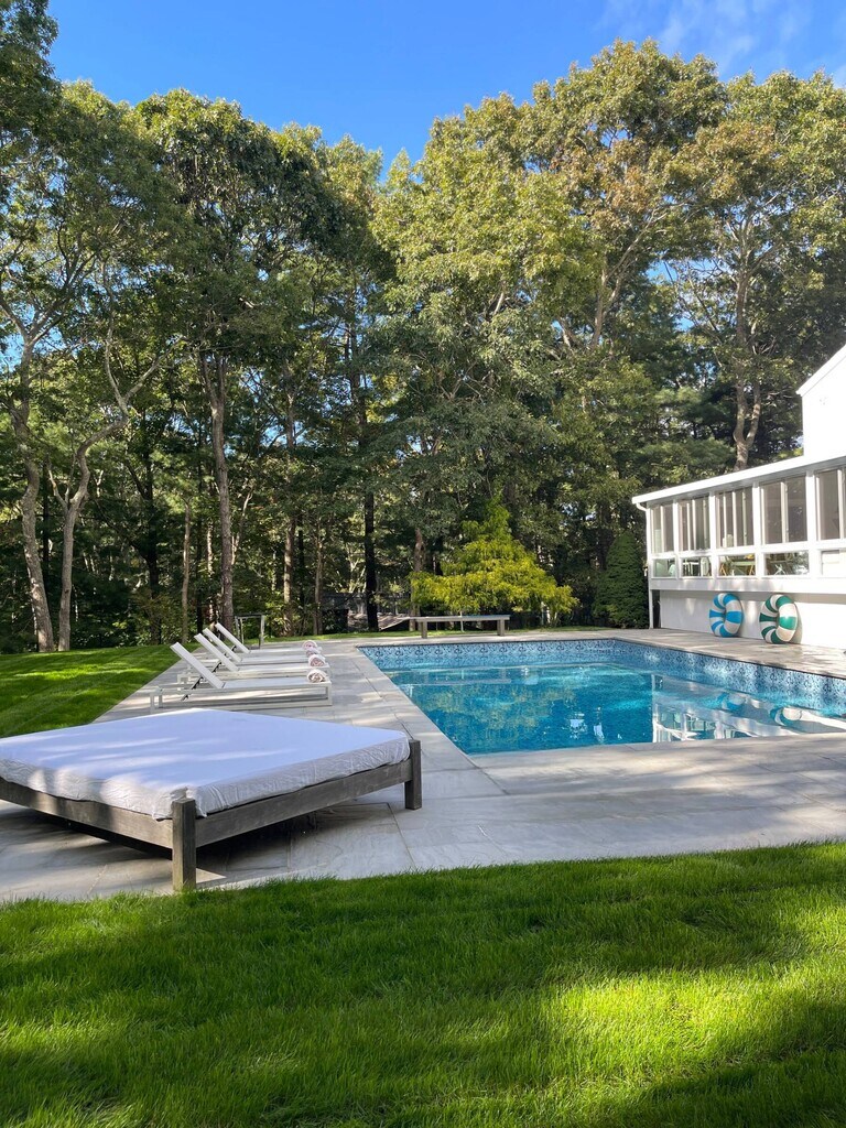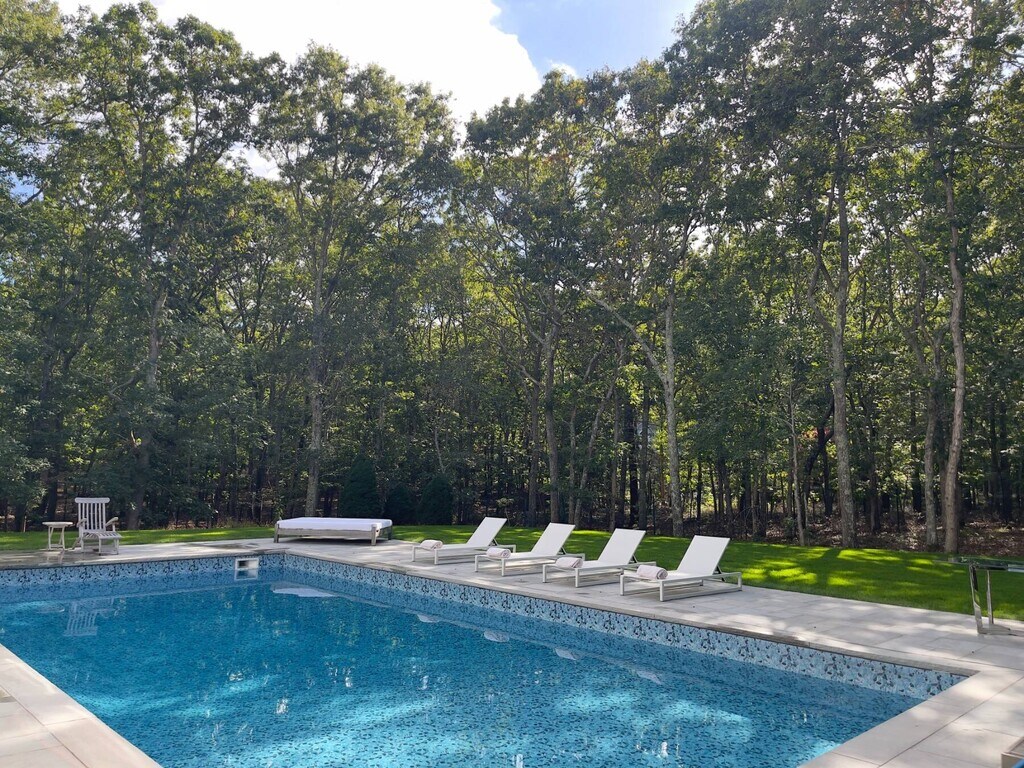 This stylish East Hampton home offers a luxurious summer escape with 3,000+ sq. ft. of living space across 2 levels, plus a finished lower level. Featuring 3 bedrooms, 3 baths, a heated pool, and a guest house with full bath, this property is perfect for entertaining. Situated on 1.9 acres, it includes a detached 2-car garage, and expert landscaping. Inside, enjoy an open living area with glass doors to the patio, a formal dining space, and a spacious kitchen with stainless steel appliances. The first-floor primary suite offers a luxurious bath, while upstairs you'll find two ensuite bedrooms and another living room with vaulted ceilings. Outdoors, the heated pool and stone patio provide the perfect spot for relaxation. Just minutes from East Hampton Village, shopping, dining, and the beach! [[Rental Registration # 24-1342]] EH RR #: 24-1342 Rental Terms: August - Labor Day: $55,000 Memorial Day - Labor Day: $120,000 July: $45,000 June: $30,000