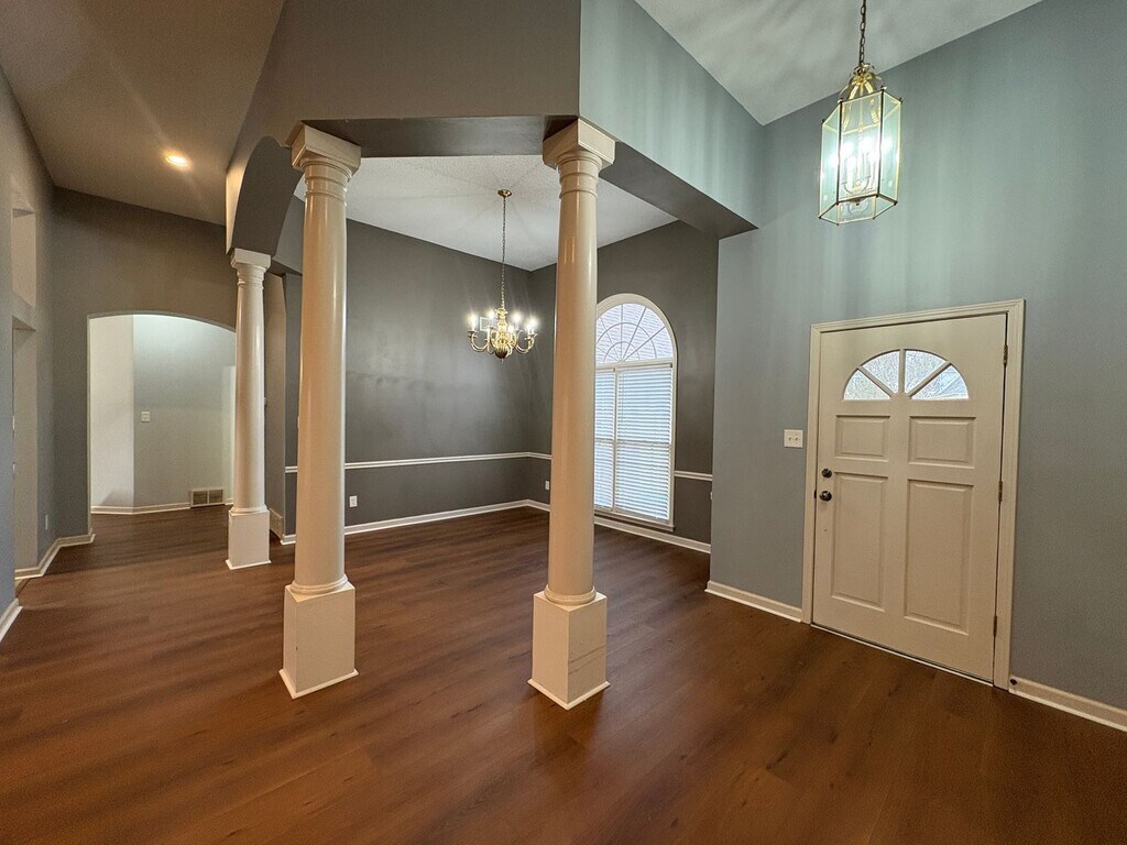 Come check out this gorgeous home with a one of a kind master bedroom set up. Interior French doors opens up to the large master with a walk in closet and luxury master bath. New Flooring throughout! In this one story home, you will also find a living room, formal dinning room, eat in kitchen, hearth room , full size laundry room, two car garage, and second bathroom. Outside you'll find a covered patio, exposed patio with shaded pergola. Call today to schedule your showing M-F 8am 5pm. All applicants must qualify per Crye-Leike Property Management.