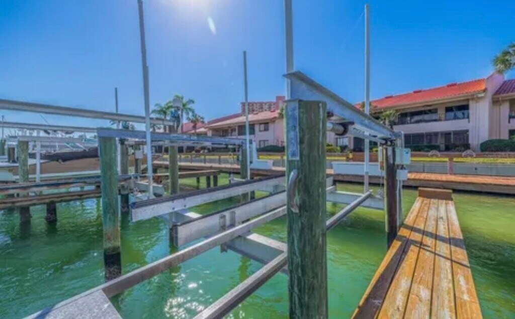 Live the Ultimate Waterfront Dream! Boat Lift Included!! Available1/1/2026 This waterfront condo is beautifully updated, freshly painted 2-bedroom, 2-bath condo is being offered newly furnished and sleeps up to 6, featuring a queen bed and custom built-in bunk beds in the second bedroom. Enjoy the beautiful weather out on the oversized back patio and wave to the Dolphins and Manatees. Watch the boats go by while sunbathing by the large, heated swimming pool. First floor, no stairs! Imagine having your boat on your own lift right in your backyard no more loading the truck or battling crowded boat ramps! Here, you can simply walk out your back door and be on the water within minutes. Enjoy the convenience of your deeded 26ft. boat slip complete with a 10,000 lb lift already in place. Plus, a private garage is included perfect for protecting your car from the elements and providing extra space for boating and fishing gear, bicycles, paddle-boards, or an additional refrigerator/freezer. The location is unbeatable! The Villas on Point Brittany sit near the mouth of Tampa Bay, offering quick boating access to Shell Key, Egmont Key, Gulfport, and downtown St. Pete. By land, you're just minutes from St. Pete Beach and Fort De Soto, with downtown St. Pete only a 10 12 minute drive. The Pinellas County bike trail is right at the top of the road, and there's even a local convenience store, sandwich shop, and butcher directly across the street from the entrance! This condo truly delivers the ultimate Florida boating lifestyle turnkey, boat-lift, and perfectly located.