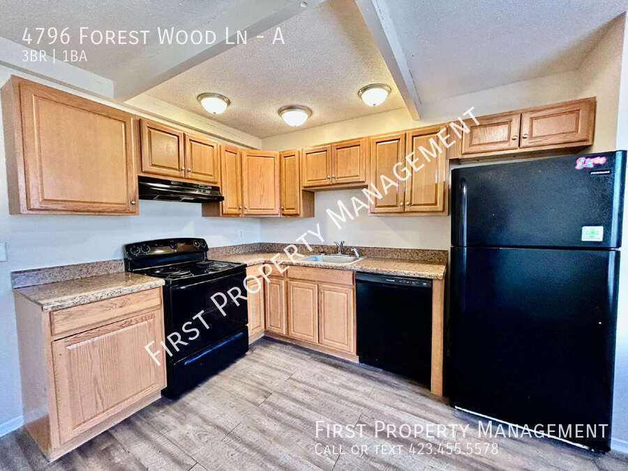 Welcome to 4796 Forest Wood Ln Unit A in Hixson, TN. You will be surprised at the size of this townhouse. When you walk in the front door you will be delighted at the grey/tan hardwood like flooring throughout the unit, moving into the eat-in kitchen you will notice the recently updated cabinets and more! Furnished appliances are stove, refrigerator, and dishwasher. There is a 3rd bedroom downstairs plus a sitting room/office along with washer/dryer hookups and a one car garage! Don't let this one get away. Central HVAC. Included lawncare with rent! Other Resident Charges: Resident Benefits Package Included with all residential leases under First Property Management is a mandatory Resident Benefits Package. Offering extra protection and convenience to our residents, the package includes: Resident Insurance Utility setup Expedited maintenance Reimbursements towards resident-caused damages and more... Package cost is $39.99/month (plus $5 for each additional leaseholder) All utilities are resident's responsibility! Security Deposits are typically the same amount as what the rent is, however security deposits are subject to increase with minor issues on credit during application review. All pets are accepted on a case by case basis and will result in extra charges, unless they are a certified ESA or Service Animal.Central Heat/Air Eat In Hvac Elec Laundry Hookups Range (Elec) Self Showings Vinyl Water Heater (Elec) Yard Work Included