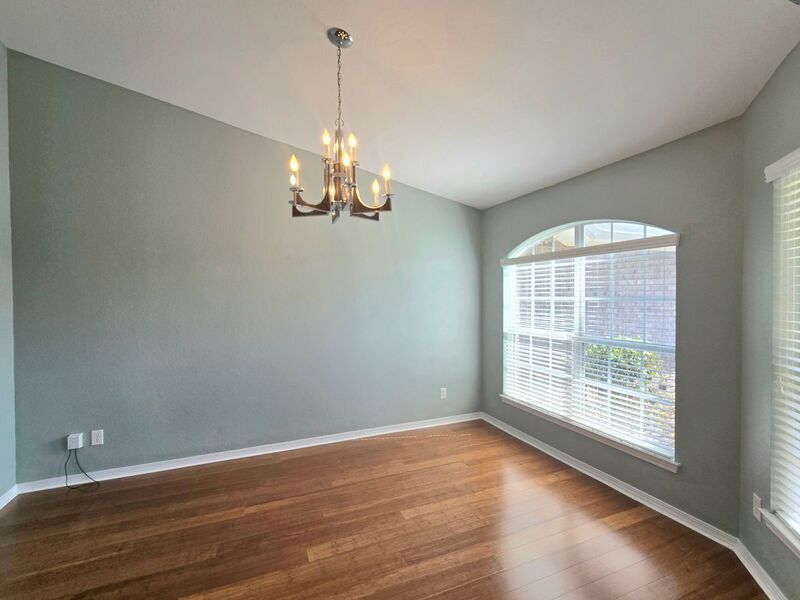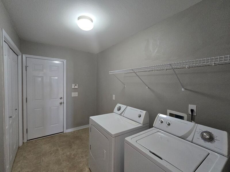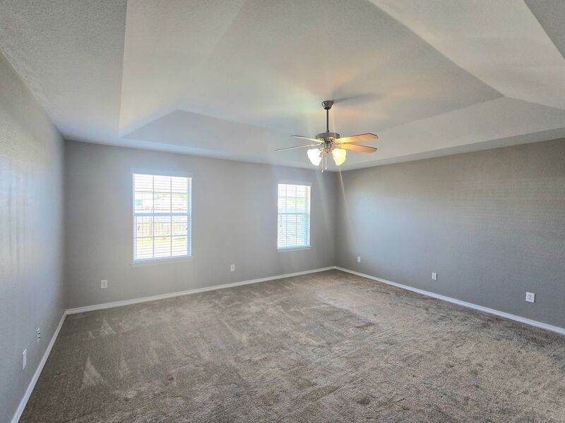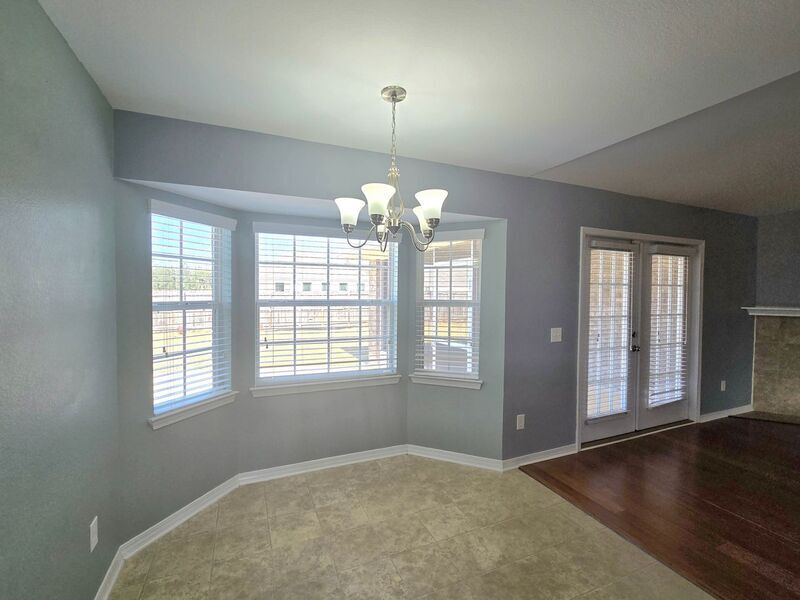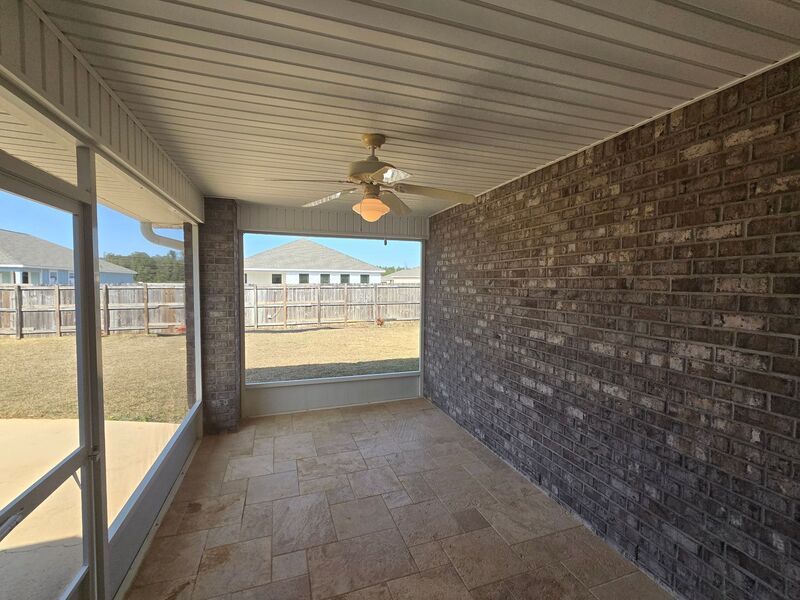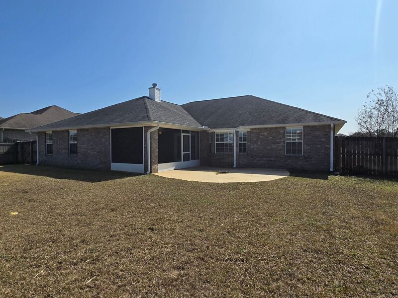 View In 3D: Nestled in the desirable Spencer Ridge West community, conveniently located in the heart of Pace, close to shopping, dining, and everyday conveniences, this spacious home offers an open-concept layout with over 2,500 square feet of comfortable living space. The great room features vaulted ceilings, a cozy wood-burning fireplace, decorative plant ledges, and French doors that open to a screened-in back patio. The stylish kitchen features an eat-in nook, convenient hop-up bar, ample dark wood cabinetry, a unique built-in desk area, a dual-basin sink, and stainless steel appliances including a side-by-side refrigerator, flat-top range/oven, built-in microwave, and dishwasher. The primary suite is a true retreat with a tray ceiling, ceiling fan, large windows overlooking the backyard, and an oversized walk-in closet. The ensuite bathroom includes a double vanity, walk-in shower, and a relaxing garden tub with tile backsplash. An additional bedroom and full bath are located near the laundry room, while two more bedrooms are situated on the opposite side of the home near a third full bathroom. Additional highlights include a large laundry room with storage shelving and a full-size washer and dryer provided, a formal dining room, dedicated office/bonus room, and a fully fenced backyard.