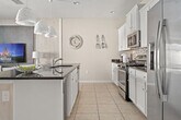 Feel at home in this spacious four-bedroom, three-bathroom apartment that accommodates up to eight guests. With two king-size beds and four twin beds, this home offers ample space for relaxation and comfort. The apartment features a smart TV set-up with a 65-inch TV in the living room, a 50-inch TV in the master bedroom on the second floor, and a 43-inch TV in the twin bedrooms on the second floor. Enjoy high-speed Wi-Fi provided by Spectrum, with speeds up to 100mbps, ensuring seamless connectivity for all your devices. For an additional fee, enjoy the convenience of a private pool and spa with a heater available for $35 per day, with a minimum of three consecutive days. The property is pet-friendly with a fee of $250 for one pet and $150 for each additional pet. Resort amenities are accessible for a fee of $35 for 1-12 guests and $45 for 13 or more guests. Located in Solterra Resort, this home is a short distance from Orlando's world-famous attractions, exceptional shopping centers, and top-notch golf courses. Enjoy easy access to I-4 and proximity to clear lakes, making it an ideal location for both relaxation and adventure. The resort's clubhouse, just an eight-minute walk away, offers a variety of amenities including a fitness center, a large pool with a waterfall and slide, a lazy river, and more. The property is equipped with a pool alarm for safety, but it does not have a safety fence. Smoking is strictly prohibited, and a $250 fee will be charged for any signs of smoking. Grills are not allowed on the property. Check-in is at 4 PM and check-out is at 10 AM. Late check-out must be authorized in advance and is only available until 4 PM. A fee of half the nightly rate applies for unauthorized late check-outs. The property is self-catering, so guests should bring or buy necessary items beyond the basic starter kit provided. Wildlife and pests are common in the area, and while regular pest control is conducted, sightings may occur.