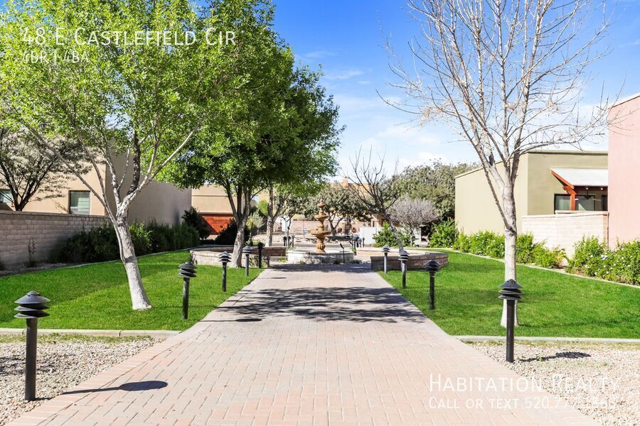 *******We only accept applications at ******** Nestled in a vibrant community adjacent to the Riverwalk Bikepath, this beautiful home is just north of the University, offering exceptional amenities including a Community Pool, Dog Park, Playground, Ramadas, and beautifully maintained grounds. Every inch of this stunning, contemporary home has been thoughtfully renovated with modern finishes throughout. Renovated tile floors, granite counters, backsplash, stainless steel appliances, and modern light fixtures set the tone, while the open and bright living room with a decorative fireplace and high ceilings flow seamlessly into the kitchen, featuring an island, breakfast bar, and huge walk-in pantry. The main level offers a bedroom with walk-in closet and a beautifully renovated bathroom, while upstairs boasts a spacious laundry room, an additional bedroom, and an incredible primary bedroom with a spa-like bath, dual vanities, and a door to the wraparound patio. Enjoy a short walk to the pool or park from this desirable North/South exposure lot featuring green space in both the front and back, giving it a wonderfully private feel. A spacious courtyard entry adds a second outdoor living space, while the location can't be beat: connect to the Loop from Riverwalk, walk to Tucson's best Farmers Market, reach the University in under 10 minutes, and enjoy shopping, LA Fitness, restaurants, and much more all within walking distance. 4Bed/4Bath 2122 sq ft Gated Community Community Pool Recently Renovated Fenced yard Ceiling Fans 2 Car Garage Garage Parking Carpet floors Tile floors Stainless Steel Appliances Dishwasher Microwave Washer/dryer included Refrigerator Stove/Oven Air conditioning Central heat Central Tucson Decorative Fireplace $4292 due at lease signing. This includes a $3692 refundable security deposit, $400 non-refundable cleaning fee, and $250 non-refundable leasing fee. First month's rent due one business day prior to move-in. Monthly charge for electric. Tenants to arrange for water/sewer/trash and gas. Our residents are required to be automatically enrolled in our Resident Benefits Package. The cost of this program is $39/month and includes renter's insurance, identity theft protection, a rewards program, credit score building, and concierge utility transfer service. Well-behaved and loved pets may be considered, with an additional one time $200 fee per pet, subject to owner approval. We do charge a $55 per person application fee, and all potential tenants must pass a credit, criminal, and prior eviction screening. Professionally managed by Habitation Realty. Equal Housing opportunity, of course!