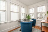 Looking for an affordable short term furnished rental in a charming and convenient neighborhood? Look no further. ALL UTILITIES included in this sunny,recently renovated 2 bedroom PLUS office in a highly coveted area of Roslindale. Just a five minute walk to Roslindale Village with its shops,restaurants,and commuter rail stop,you'll be just steps to everything you need. The unit was recently renovated and is FULLY furnished,down to the silverware. You'll enter into an airy foyer that leads to your large living room,with an attached sunroom/office. Beyond there you'll find a formal dining room,along with a nicely redone eat in kitchen. Both bedrooms are spacious,with one offering a king sized bed,and the other a queen sized bed. There is a private deck off of the kitchen and a large shared yard as well. Terms are flexible,open to leases anywhere from 1-4 months. Available asap. MLS# 73464068
