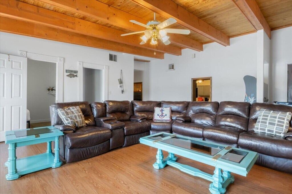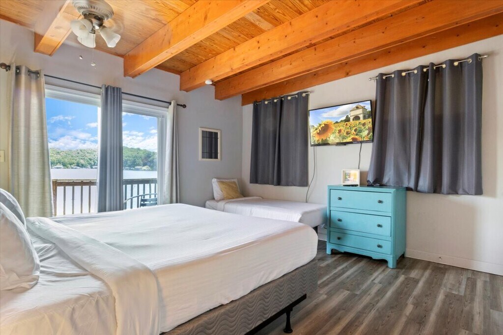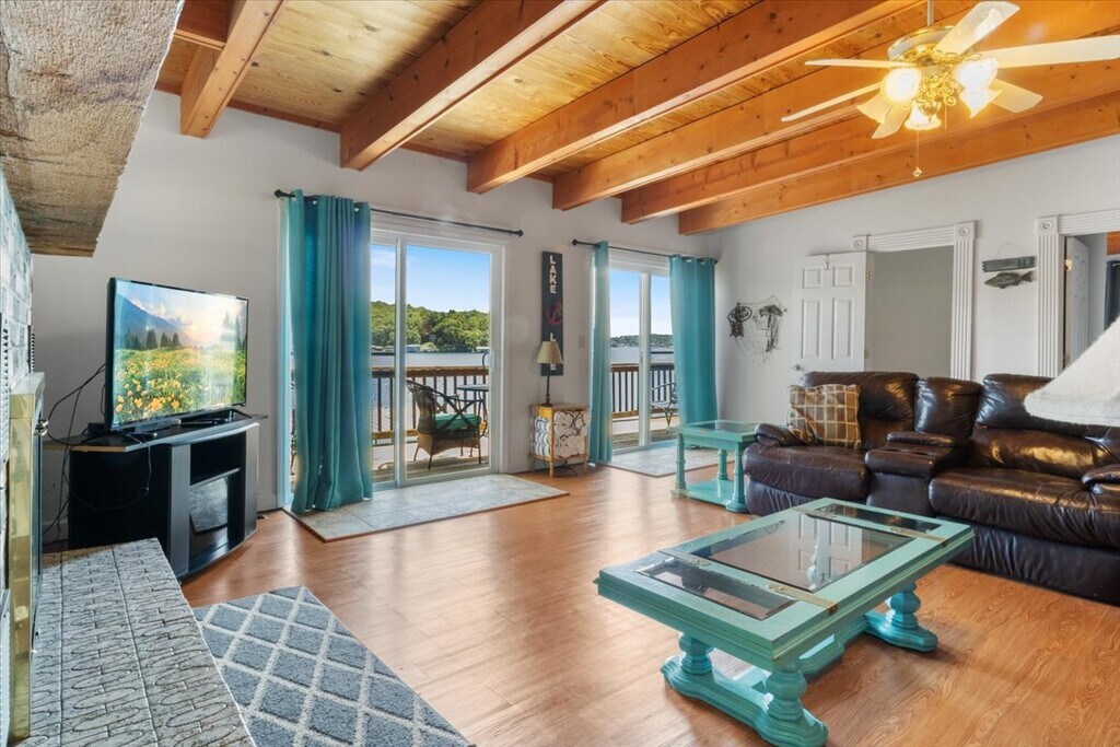 Available for 3 to 6 month midterm lease ONLY this expansive lakefront home at the 4 Mile Marker of Lake of the Ozarks offers the perfect long-term retreat. With six bedrooms, 3.5 bathrooms, multiple living areas, and a fully equipped kitchen, it's ideal for families, groups, or professionals seeking an extended lakeside stay with all the comforts of home. Step outside to enjoy deep, swim-friendly water, a private dock with Tiki Bar and boat slip, and the oversized Martini Deck—perfect for morning coffee, sunbathing, or evenings by the firepit. Nestled in a quiet deep-water cove, the property also offers incredible fishing, lake views, and easy access to nearby restaurants, marinas, and entertainment along HH and Hwy 54. The Space Bedrooms: Bedroom 1: King Bed + Twin Bedroom 2: Queen Bed Bedroom 3: Full Bed Bedroom 4: Full Bed Cabin: 2 Bedrooms with two Full Beds + Bunk Bed (Twin over Full) Kitchen: Fully equipped with modern appliances and ample seating for family meals or group dining. Indoor Living: Comfortable seating, gorgeous lake views, and multiple gathering areas for work or relaxation. Outdoor Living: Multiple decks, private dock with entertaining space and boat slip, oversized Martini Deck, and firepit area. General: High-speed WiFi, washer and dryer, central A/C and heating, towels and linens, hairdryer, high chair, complimentary toiletries, trash bags, and paper products provided. Parking: On-site parking for 3–4 vehicles. Lease Terms Midterm lease only: 3–6 month maximum No smoking, no pets, no parties Ring Doorbell and exterior cameras for security Neighborhood Set in a quiet cove, ideal for relaxing, swimming, and fishing. Nearby amenities include Village Marina and Boat House. A short drive provides access to local restaurants and entertainment such as Neon Taco, Tap & Grill, DockKnockers, Lake Burger, Shady Gators, and Camden on the Lake. Getting Around Approximately 15 minutes to Bagnell Dam and 20 minutes to the Osage Beach area for shopping, dining, and recreation. Minimum Requirements To Rent with Salisbury Property Management Application fee is $25 Admin Fee $35 No prior evictions Minimum Credit Score of 600 Income must be 3 times the rent Good references from past landlords Pass a background check Must be a non-smoker No Pets Employment Verification All person's over the age of 18 that is not a dependent must pass these requirements. First, Last, and Deposit Required for all leases