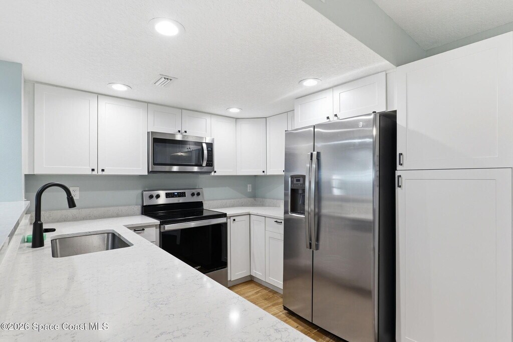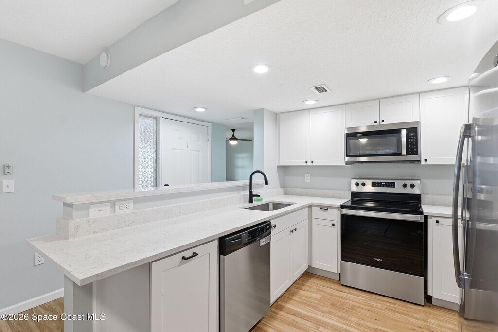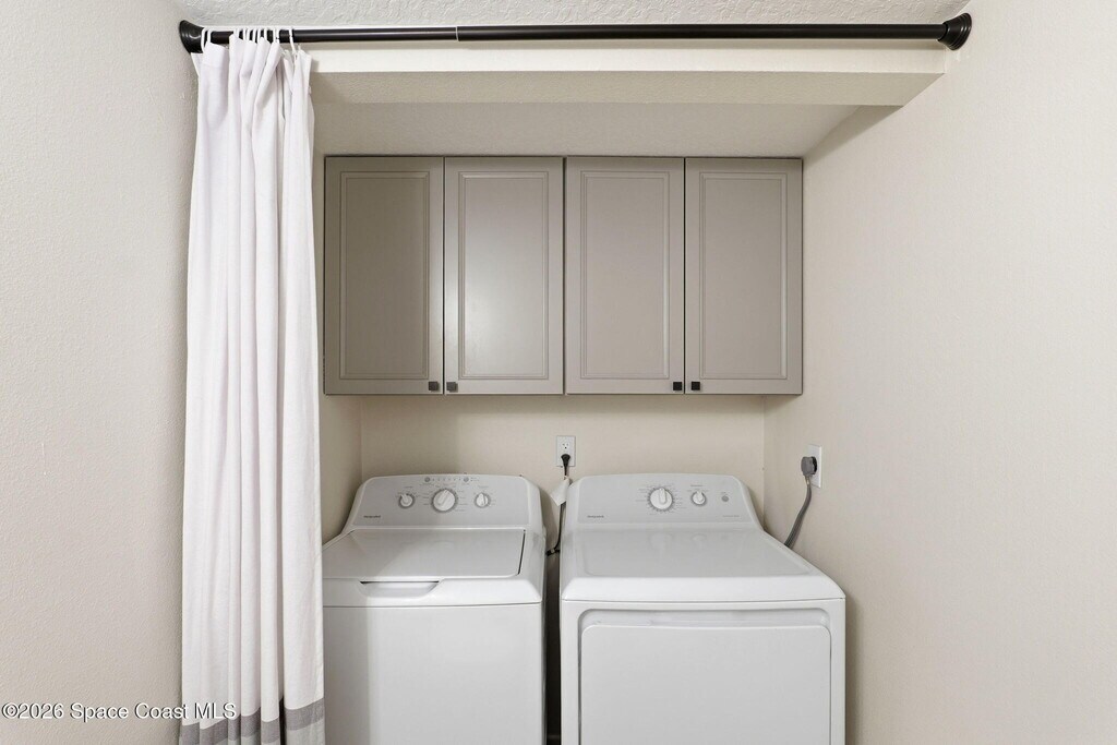 Completely renovated in 2022,this beautifully updated townhome is located in the charming,oak-lined community of Chateau in the Pines in the heart of West Melbourne. Every detail has been redone,including a new roof,HVAC system,water heater,flooring,kitchen,bathrooms,appliances,and more,with renovations completed in March 2024. The home features two spacious primary bedrooms,each with custom closets and private full bathrooms,along with a bright and functional main level offering a kitchen,living room,dining area or office space,and a convenient half bath with a brand-new washer and dryer. Enjoy outdoor living with a private courtyard and a balcony for fresh air and relaxation. Additional highlights include a community pool,two reserved parking spaces plus guest parking,and a central location close to shopping,dining,and everyday conveniences. Owner is a Florida Licensed Real Estate Broker. MLS # 1074385