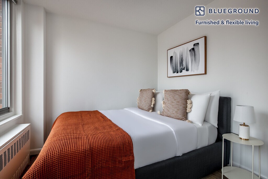 Show up and start living from day one in New York with this stylish two bedroom Blueground apartment. You’ll love coming home to this thoughtfully furnished, beautifully designed, and fully equipped Kips Bay home with stunning high floor views over the city. (ID #NYC1270) The advertised rate of $6,520/month is the lowest available price, based on a 12 month(s) stay with a move-in date of May 11, 2026. Rates vary depending on the duration of stay, season, and other parameters. For exact pricing and additional pricing components, please visit our website and enter your desired move-in and move-out dates. The rate is applicable when billed upfront; it can be higher if billed in multiple payments. Brokers are welcome to reach out. Were you looking for an unfurnished lease? Try Blueground instead and upgrade from unfurnished to furnished living: - Furnished at rates comparable to unfurnished - No setup or furniture costs - save thousands - Move-in ready - save time, just bring your suitcase Designed with you in mind Thoughtfully designed with bespoke finishes, modern furnishings, and a fully equipped kitchen, you’ll enjoy that “I’m home” feeling with this Blueground apartment. Whether you’re lounging in your comfortable living room streaming the latest and greatest entertainment on the smart TV or premium wireless speaker, or getting some well-earned rest on the superior quality mattress with luxury linens, you’ll fall in love with everything this Kips Bay apartment has to offer. Sleeping arrangements Queen Bed, 63in/160cm Queen Bed, 63in/160cm Amenities Building amenities unique to this two bedroom apartment include an on-site: - Basketball Court - BBQ Area - Doorman - Dryer in building - Elevator - Washing machine in building - Pets allowed - Playground Arrival and ongoing support The entire apartment is yours to enjoy! Throughout your stay, you’ll have access to our Client Experience team through the Blueground App. You can schedule additional cleanings, submit maintenance requests, and view our neighborhood recommendations with just a few taps. We’ll share all details upon confirmation of your stay. Ideally Located This furnished property is situated in Kips Bay. Stretching from the East River to Lexington Avenue, the peaceful neighborhood offers convenience and easy access to the rest of the city. Several hospitals are located here, making it a hub for medical care. Kips Bay offers dining options for every budget as well as numerous cinemas and fitness centers. During the weekends, locals stroll alongside the water, take the water taxi to another borough, or hang out in one of the parks, such as Bellevue South. From here, Rockefeller Center is only 20 minutes away by subway. Other things to note Building amenities may have an extra cost. This Blueground apartment has flexible lease options, allowing you to book it for one month, a year, or more. Pets are welcome, though weight limits and breed restrictions apply and may incur fees. Brokes CYOF. We take great pride in ensuring every photo displayed is shot in our own units with our actual furnishings. That said, we regularly refresh our decor and furniture arrangement, which may differ from what’s pictured. [SI]
