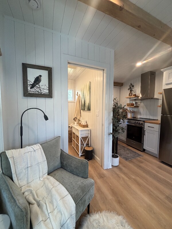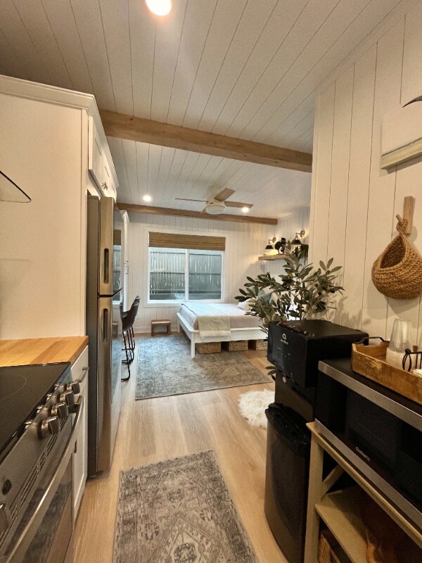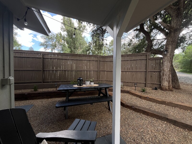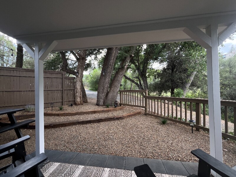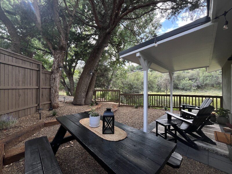 Property Id: 1516539 This cozy, beautifully designed single occupancy studio cottage is nestled in a quiet suburban, semi-wilderness neighborhood. Situated at the corner of a .5 acre residential property, that is shared by 2 other private units. This tree-lined retreat, has a seasonal creek that is often frequented by the local fauna, all of which can be enjoyed by viewing through the windows and when working or relaxing in the front yard. A covered patio with Adirondack rocking chairs, a picnic table, cafe lights and electrical outlets makes for a beautiful and functional outdoor space. The interior layout has a spacious feel with plenty of room to store your immediate belongings. Every need has been considered for convenience and comfort including a fully-equipped kitchen, water purifier, full size refrigerator, luxury bedding, USB and USBC outlets. Laundry facilities are located in the finished basement of the main house, and doubles as a temporary office. There is also minimal space to store luggage in the basement. Conveniently located 4 miles from ERAU, 2 miles from YRMC and 3 miles from downtown Prescott. All utilities and minimal routine cleaning and towel/bedding laundering are included. Property has external security cameras. Cottage includes a private driveway. No smoking/vaping or pets. This is not an ADA accessible property. Owner/property manager lives on premises and is very responsive.