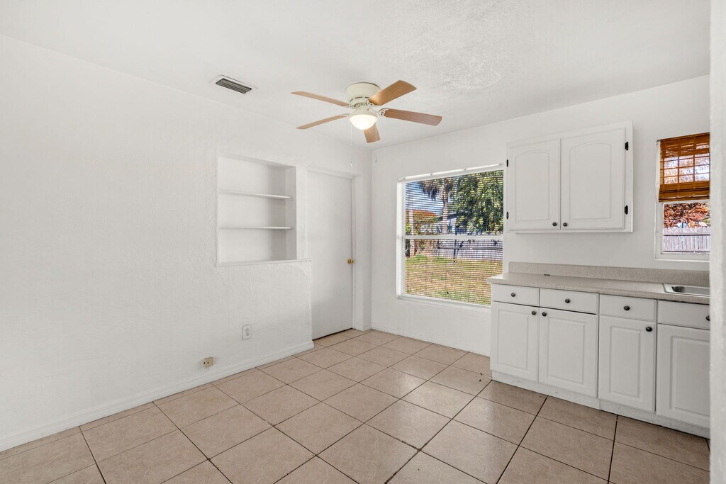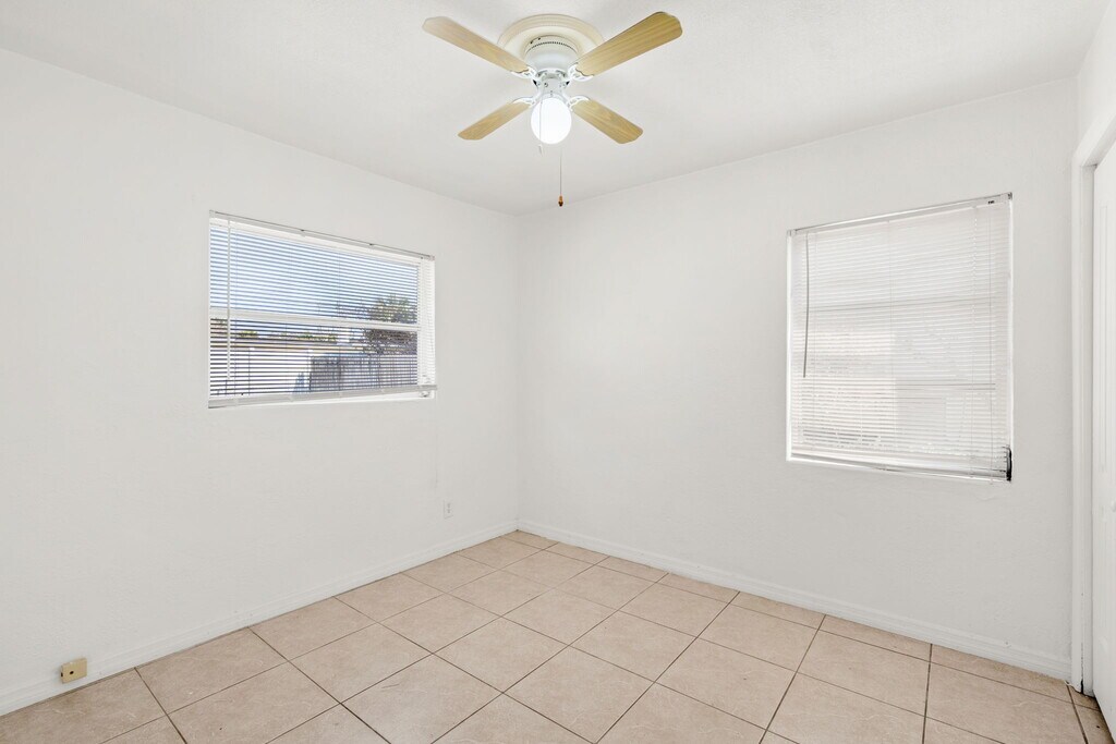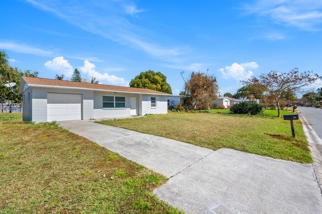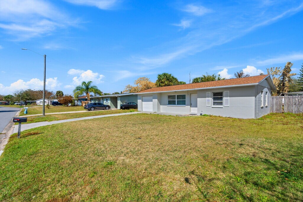 Welcome home to 480 Falmouth Ave in the heart of tropical Merritt Island! This neighborhood features well maintained single-family homes with quiet residential streets and low traffic, conveniently located near the Banana River, Merritt Island Airport, SR 520 for direct access to Cocoa Beach and Cocoa Village, plus you're a short walk to Veteran's Park with miles of trails, a fishing dock, and brand new events amphitheater. Pulling up to the house you'll notice a large front yard, private mailbox, and an extra long driveway leading to a covered front door. Inside you'll find light and bright open living space featuring tile floors throughout. Each room features window blinds for privacy and ceiling fans to stay cool and keep power bills low. The kitchen is well equipped with a newer refrigerator, new microwave, new shelving, and a stainless steel range. Two full size bedrooms with lots of closet space are thoughtfully laid out for privacy, with easy access to a linen closet and full bathroom featuring a large vanity with cabinet storage, medicine cabinet, and tub/shower combo for households of all sizes and ages. Passing from the kitchen, past the dinette, you'll find an inside laundry room with lots of space for a full-size electric clothes dryer and washing machine. The garage is perfect for storing bicycles, holiday decorations, kayaks, and more, saving on storage fees and keeping your belongings safe and dry. The backyard is very large with plenty of room for sunbathing, BBQ's in the summer, gardening, and more. This home is available for immediate occupancy, schedule your private showing today!
