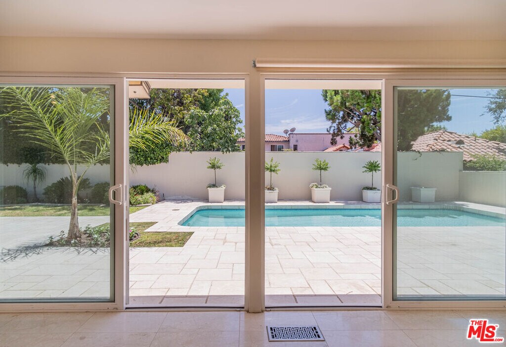 Welcome home to a sun-washed retreat in Brentwood's 90049 hills. Brand new refrigerator and stove top not pictured. The open living, dining, and kitchen core flows over cool marble, while five quiet bedrooms rest on warm wood floors. Slide back the glass and the indoors spill to a freshly resurfaced pool, spa, and flat grassy yard, perfect for evening swims or weekend play. A generous primary suite opens poolside; two bedrooms share a Jack & Jill, plus a flexible guest/office wing and inside laundry. Fresh paint and a sleek new garage door finish the look. Tucked minutes from Kenter Canyon, Brentwood Science Magnet, Paul Revere MS, and village cafes, the home pairs hillside serenity with Westside convenience. MLS# 26637611