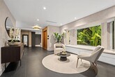 Welcome to Casa Marinella, fully renovated masterpiece on an oversized 18,731 Sqft lot in a quiet cul-de-sac within the exclusive, gated Bay Point community. This one-story home offers over 3,500 Sqft of refined interiors w a split floor plan, Italian slate and terrazzo flooring, impact windows, floor-to-ceiling doors, and a Savant smart home system. Custom features include TV wall units, wooden paneling, and designer wallpaper. The kitchen boasts custom cabinets and quartzite countertops. Luxurious bathrooms feature natural materials. Additional upgrades include motorized shades, exterior cameras, and whole-house water filtration. The outdoor space includes a summer kitchen, cabana bath, saltwater pool, jacuzzi, and lush landscaping w fruit trees. Seller financing available with 60% down. MLS # A11975756