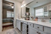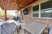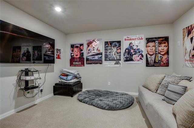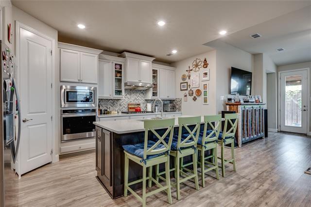 Welcome to this stunning home, ideally located in the sought-after Villas at Parker. This spacious 4-bedroom, 4-bath residence features an incredible open-concept floor plan designed for both comfort and entertaining. The gorgeous kitchen is a chef’s dream, showcasing Quartz countertops, Whirlpool stainless steel appliances, a decorative tile backsplash, and a large center island perfect for gathering. The primary suite is conveniently located on the first floor and offers a relaxing en suite bath with a garden tub and a generous walk-in closet. Upstairs, you’ll find a second living area, a game room, and three spacious bedrooms—plenty of room for family, guests, or a home office setup. The home welcomes you with a charming covered front porch, while the backyard impresses with a custom covered patio, stamped concrete flooring, and outdoor TV wiring—ideal for entertaining. Situated in a prime location within Lewisville ISD, this home is just minutes from Arbor Hills Nature Preserve, the Dallas North Tollway, and President George Bush Turnpike.