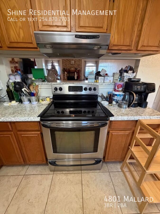 Welcome to this stunning 3-bedroom, 2-bathroom home located in the desirable area of Killeen, TX. This property boasts a range of modern amenities that enhance comfort and convenience. The home features a vaulted living room ceiling, creating a spacious and airy atmosphere, complemented by a wood-burning fireplace for cozy evenings. The kitchen is a chef's dream with upgraded countertops, a stainless dishwasher, a glass top oven/range, and a stainless side-by-side refrigerator with water and ice in the door. The pull-down kitchen sink faucet and stainless vent-hood add a touch of sophistication. The master bath is a haven of relaxation with a dual vanity, a garden tub, and his/her closets. The master bedroom is adorned with wood shutter blinds, adding a rustic charm. The home also includes a digital thermostat, ceiling fans, and a mix of wood, carpet, and tile flooring for added comfort. The exterior features a large, covered back patio, perfect for outdoor entertaining, a storage shed for extra space, and a sprinkler system to maintain the lush landscape. The 2-car garage comes with an opener for easy access. This home truly offers a blend of style, comfort, and convenience. 2 Car Garage Parking With Opener Covered Back Patio Decrotive Ceiling In Kitchen Digital Thermostat Duel Vanity In Master Bath Garden Tub In Master Bath His/Her Closets Large Back Patio Pull Down Kitchen Sink Faucet Stainless Dishwasher Stainless Glass Top Oven/Range Stainless Sid By Side Refrigerator With Water And Ice In Door Stainless Vent Hood Storage Shed Upgrade Counter Tops In Kitchen Valted Livingroom Ceiling Wood Burning Fire Place Wood Shutter Blinds In Master Bedroom Wood/Carpet/Tile Flooring