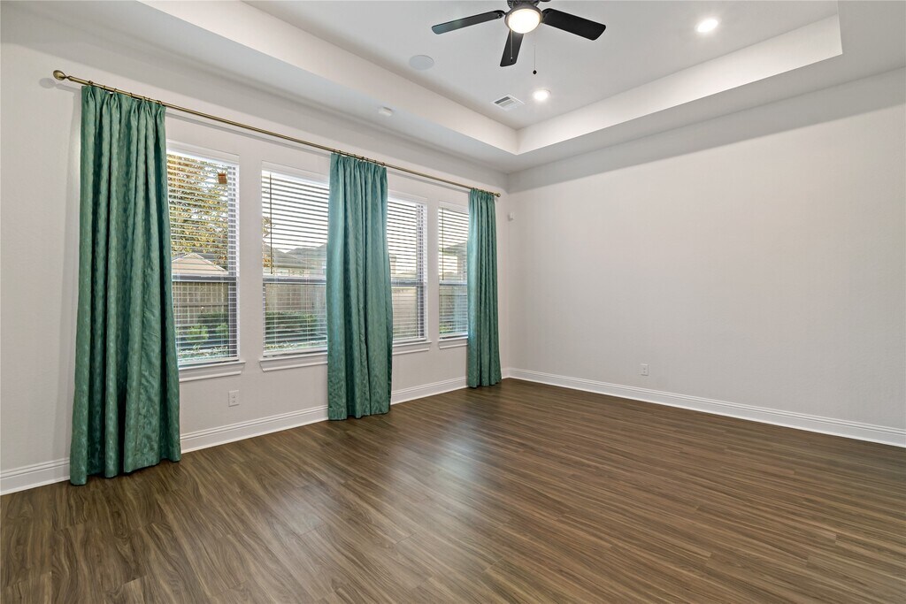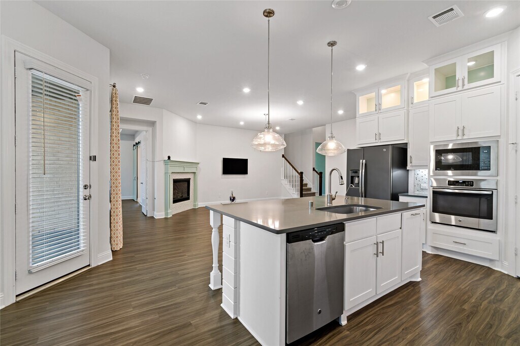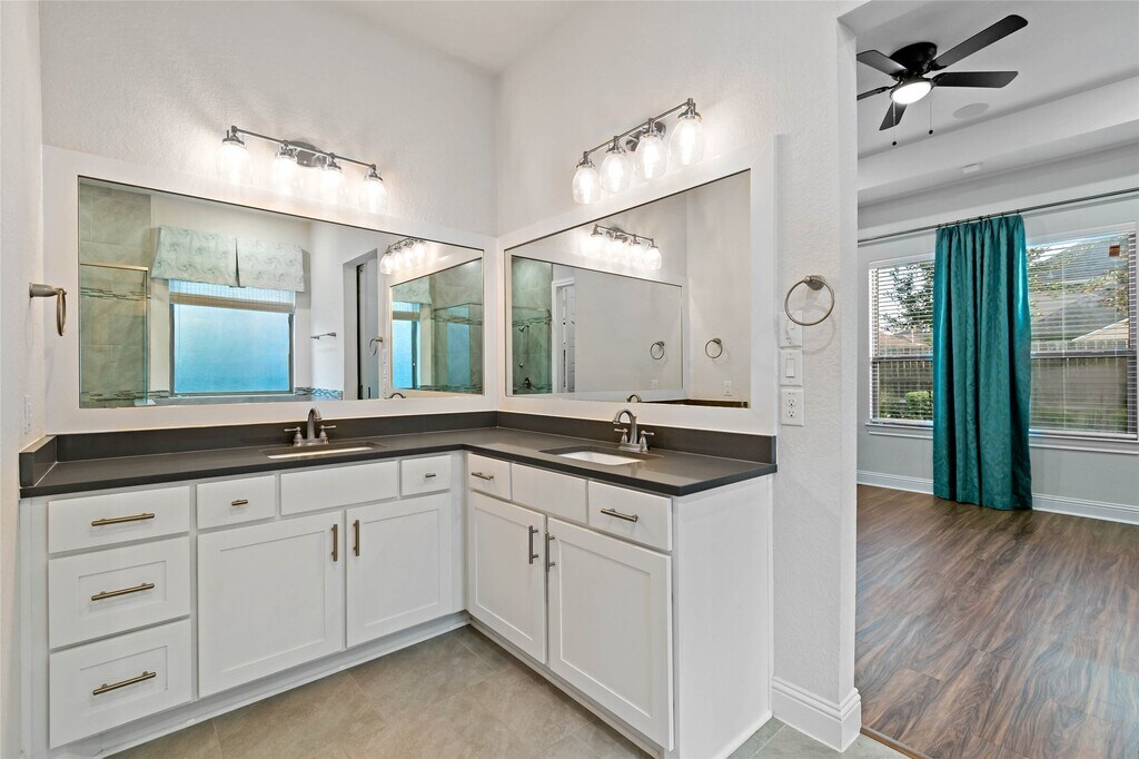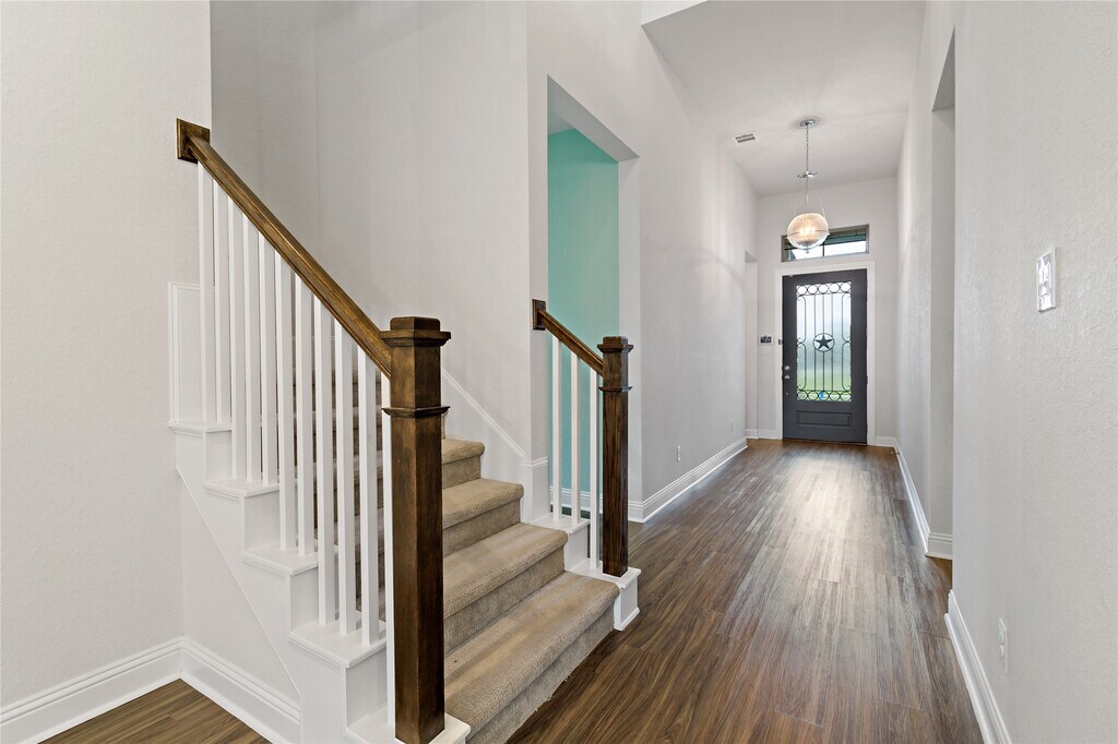 This HUGE residence offers a harmonious blend of space and style across its 3600 sq. ft. The two-story layout comprises 4 bedrooms and 3 bathrooms,providing ample room for family living or guests. The ground floor hosts the main living areas. The kitchen stands out with its crisp white cabinetry,sleek countertops,and modern appliances,complemented by a subtle mosaic backsplash and elegantly lit display cabinets. Engineered wood flooring flows throughout,adding warmth and continuity to the space. The living room features large windows that invite tons of natural light. The office and media rooms are perfectly located in the heart of the home. The upper level,besides the large and well lit game room includes the spacious 230 sq. ft. guest bedroom. Bathrooms are well-appointed with ample vanity space and neutral tiling. The home's neatly tucked into the quiet middle of the neighborhood,with the community pool across the street and the elementary school is within walking distance. MLS# 82245474