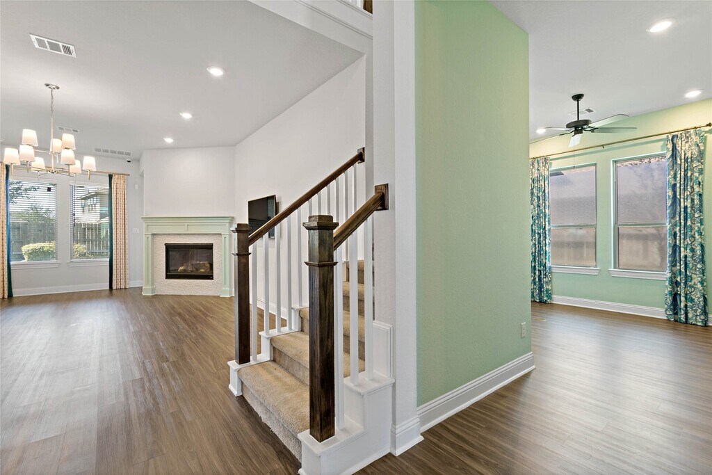 This HUGE residence offers a harmonious blend of space and style across its 3600 sq. ft. The two-story layout comprises 4 bedrooms and 3 bathrooms,providing ample room for family living or guests. The ground floor hosts the main living areas. The kitchen stands out with its crisp white cabinetry,sleek countertops,and modern appliances,complemented by a subtle mosaic backsplash and elegantly lit display cabinets. Engineered wood flooring flows throughout,adding warmth and continuity to the space. The living room features large windows that invite tons of natural light. The office and media rooms are perfectly located in the heart of the home. The upper level,besides the large and well lit game room includes the spacious 230 sq. ft. guest bedroom. Bathrooms are well-appointed with ample vanity space and neutral tiling. The home's neatly tucked into the quiet middle of the neighborhood,with the community pool across the street and the elementary school is within walking distance. MLS# 8043189