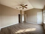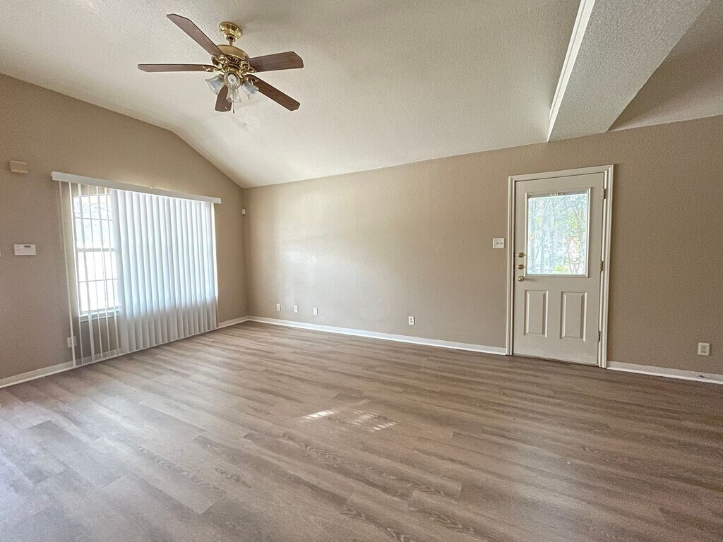 View 360 Virtual Tour: Welcome to this 3-bedroom, 2-bath duplex featuring stylish vinyl plank flooring throughout for easy maintenance and a modern look. The living area and all bedrooms include ceiling fans for year-round comfort. The kitchen offers traditional white appliances and opens to a dedicated dining space, perfect for everyday meals. Both bathrooms feature ample cabinet storage, providing plenty of room to stay organized. This home combines comfort, convenience, and functionality in a well-designed layout.