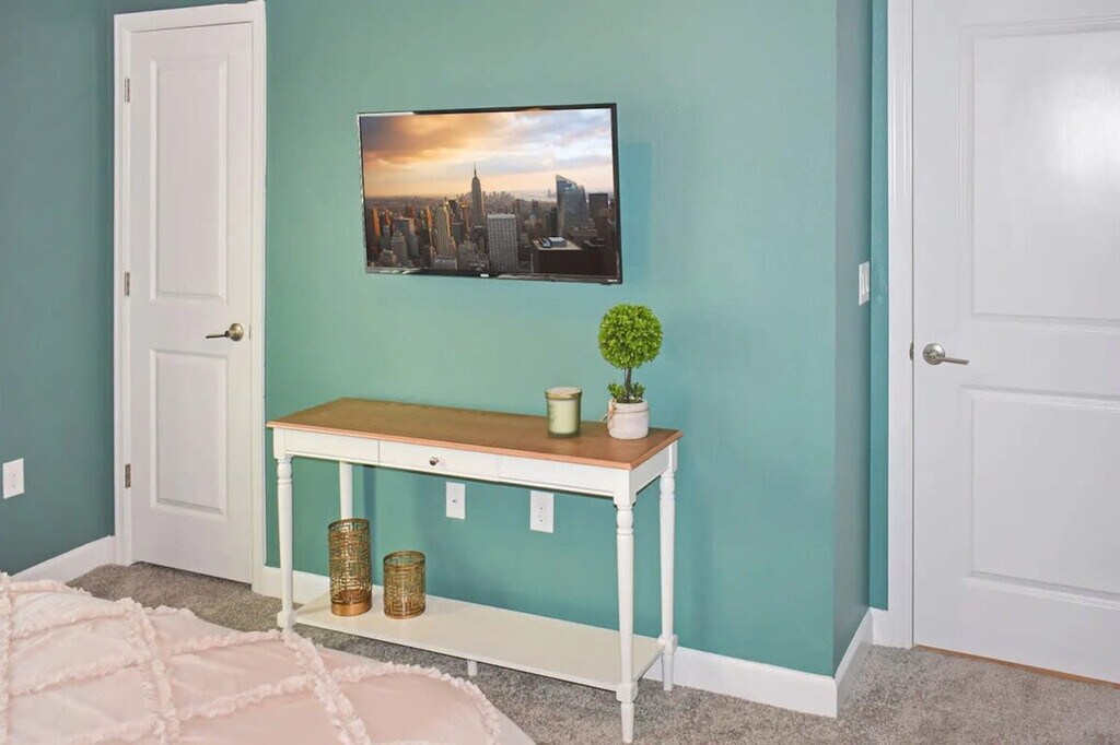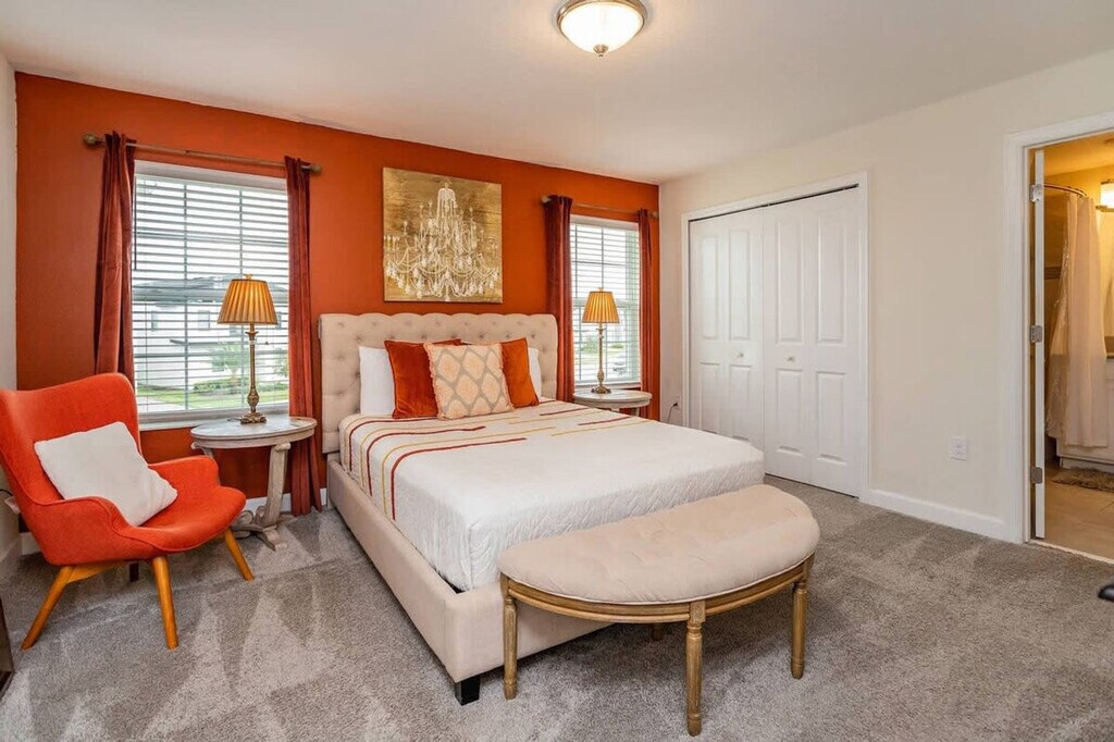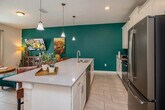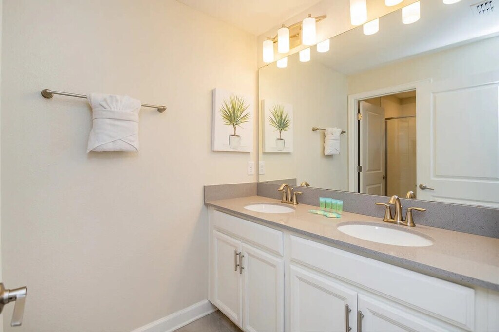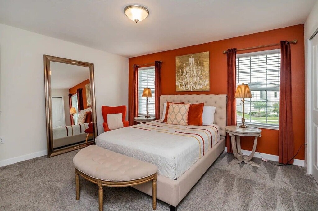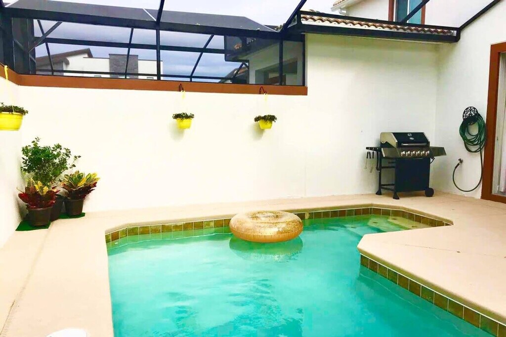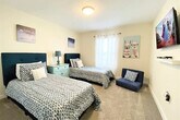 Experience the ultimate getaway in this spacious 4-bedroom home with a private pool, located in the prime Storey Lake area. This home comfortably sleeps 8 guests and is just 10 minutes away from Disney Parks. Enjoy exclusive access to the clubhouse, featuring pools, a lazy river, a fitness center, mini-golf, and more. Your dream vacation begins here! Discover ultimate comfort in this 4-bedroom retreat, where spacious living, dining, and a fully equipped kitchen create a haven for relaxation. Every detail has been carefully considered for your exceptional stay. Step onto the patio, where a private heatable pool invites you to unwind. The first floor features a queen bedroom with an adjacent bathroom for convenience. Upstairs, indulge in the lavish master king bed suite for restful nights. Two additional bedrooms, both with two single beds, share a bathroom. A dedicated laundry room with a washer and dryer adds to your convenience. Stay connected with free Wi-Fi, enjoy complimentary parking, and start your journey with our thoughtful welcome kit, stocked with essential amenities. Heating the pool is a paid service and there is also a fee charged to use the barbecue grill. Storey Lake Resort boasts a perfect location just 10 minutes from all major attractions and theme parks in Orlando, including Walt Disney World, Universal Resort, and Sea World. Enjoy fantastic resort amenities for the whole family, such as a tiki bar, a resort-style pool with slides and a lazy river, a sports court, mini-golf, kayaking, and a fitness center. There are two clubs within the property, one featuring a themed pirate pool that kids will love, just a short walk from the house. Located just off Osceola Parkway, the resort offers easy access to restaurants, shopping, and supermarkets, all within a 5-minute drive. Quiet hours are between 22:00 and 8:00. Replenishment of bathroom and kitchen amenities is the guest's responsibility. [SI]