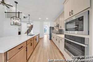 Introducing an exceptional two-story home located just off the highly sought-after I-35 corridor-providing seamless access to San Antonio, New Braunfels, San Marcos, and Austin. Featuring 4 spacious bedrooms, 2.5 well-appointed baths, and 2,572 sq ft of thoughtfully designed living space, this residence perfectly blends comfort and modern style. Step inside to be welcomed by soaring high ceilings that create an immediate sense of openness and sophistication. The beautiful island kitchen-complete with gas cooking, a breakfast bar, and ample counter space-is ideal for preparing meals and hosting gatherings with ease. Retreat to the spa-inspired walk-in shower, designed to offer the ultimate relaxation and luxury after a long day. Throughout the home, generous natural light, smart layout choices, and elegant finishes contribute to a warm and inviting atmosphere.