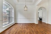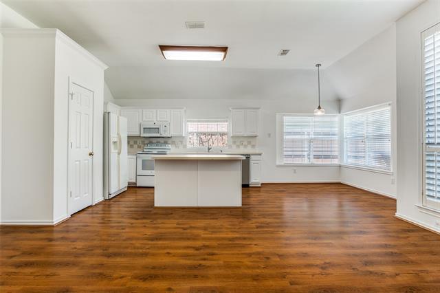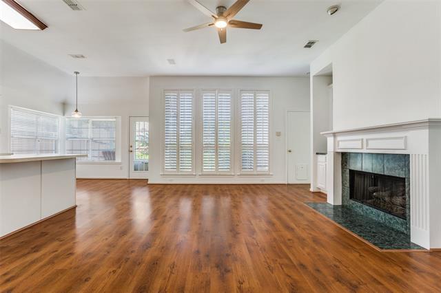 If you are looking for a charming, move-in ready single story home zoned to award-winning Plano ISD schools then this is the one for you! Inside, the bright and open floor plan has been refreshed with all new interior paint and trim, new carpet in both of the bedrooms and new light fixtures throughout the home. Wood laminate flooring in the main living and dining areas add warmth while keeping cleaning and care effortless. The spacious family room features a cozy fireplace flanked by built ins, while the kitchen offers a center island and a brand new dishwasher. Tucked away at the back of the home you will find the private primary suite which includes dual sinks, a garden tub, separate shower and walk-in closet. Even better—the refrigerator, washer, and dryer all stay with the home, making move-in a breeze. The beautifully landscaped backyard is a wonderful place to sit and relax under the covered patio deck and enjoy the Texas weather. With its prime location and perfectly situated across the street from the community pool in the desirable Preston View neighborhood, this property offers both comfort and convenience with easy access to shopping, dining, and major highways.