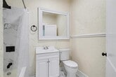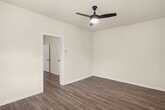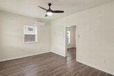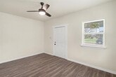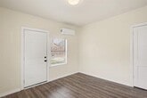 Updated duplex offering a bright and functional layout with modern finishes throughout. The home features durable wood style flooring, neutral paint, and large windows that bring in abundant natural light. The kitchen includes stainless steel appliances, updated countertops, ample cabinet storage, and a full size washer and dryer for added convenience. The bathroom has been updated with modern tile and fixtures. Energy efficient mini split systems provide heating and cooling for year round comfort. Spacious living and bedroom areas create a comfortable layout with ceiling fans and updated lighting. The property also includes a private rear entrance and access to a large backyard space. Convenient location with easy access to nearby dining, shopping, and major commuting routes.