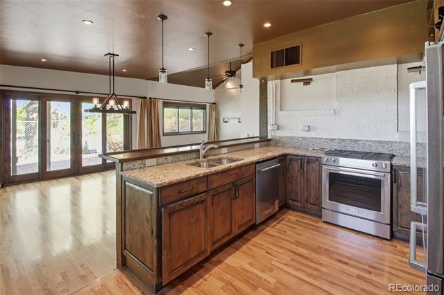 This gem is located just six blocks south of Sloan’s Lake right on a beautiful Greenbelt. Featuring: - Unobstructed Denver skyline view - Bike path access just steps from the front door - Located on the W line, situated between the Sheridan and Perry Station - property sits on a 21 hole disc golf course With the Dry Gulch park to the north and east of this property you will take outdoor living to the next level. This home has been immaculately cared for, recently updated, with hardwood floors throughout. 1 bedrooms, 1 bathroom and laundry. Outside you will enjoy: - Off street parking - Oversized shared patio - Beautifully maintained backyard -Shed for storage Lease start date - ASAP - Communal raised garden beds - Playground in adjoining park Trash, security system and lawn care included. * Attached unit on front of home with separate entrance rented to long term tenants. Single Family Residence MLS# 6165994