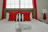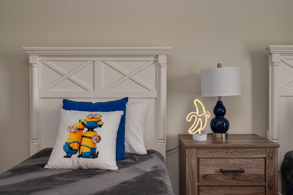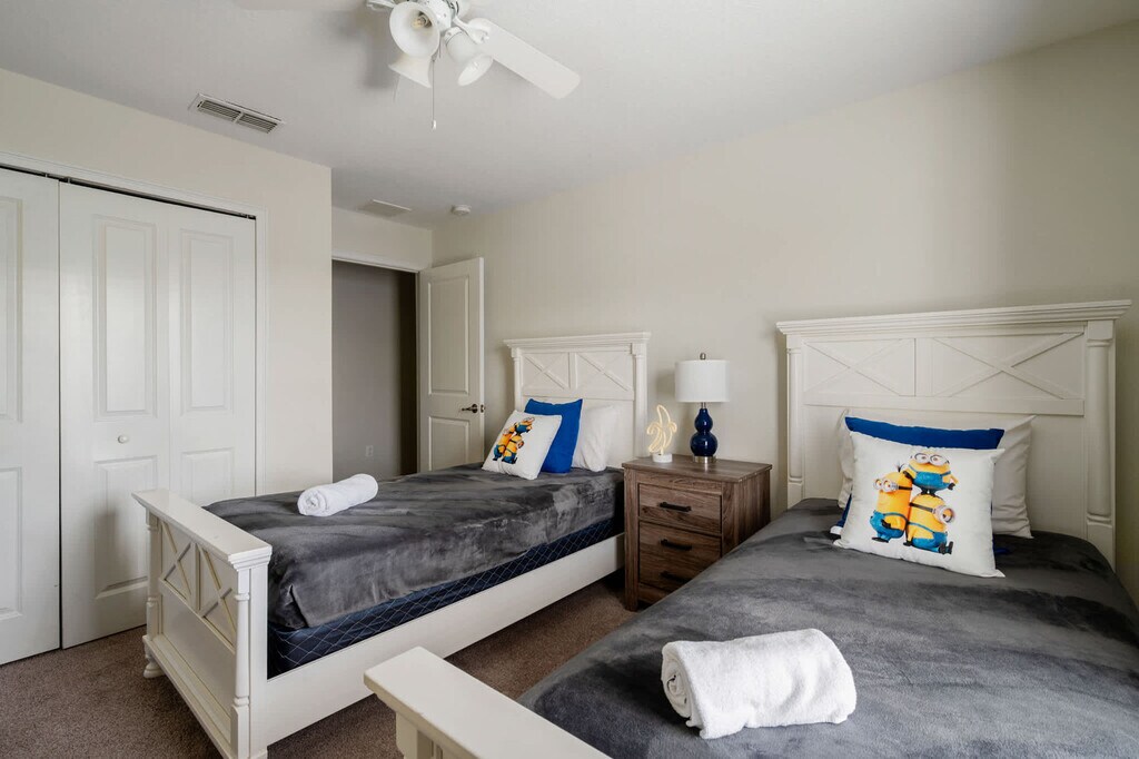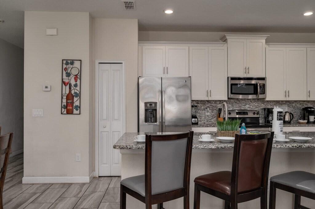 Welcome to your home away from home in the heart of Kissimmee! This charming property features four spacious bedrooms and three bathrooms, providing ample space for a family-fun vacation. Enjoy the large living area and a fully equipped kitchen with stainless steel appliances, perfect for preparing meals. Step outside to your private pool, complete with loungers and the option to add heating, and soak up the Florida sun. Located in the Storey Lake Resort, you'll have access to a community water park and clubhouse amenities. This delightful home offers a large full kitchen with stainless steel appliances, spacious indoor and outdoor dining areas, and a private pool with the option to add heating. The living area is perfect for relaxation, and the free washer and dryer add convenience to your stay. Enjoy access to the community water park and amenity center/clubhouse, making it an ideal choice for family fun. For an additional cost of $35 per day, you can add pool heating to your reservation. We kindly ask for at least a week's notice to coordinate this amenity. The property welcomes one house-trained dog with prior written notification and approval, subject to a pet fee and a security deposit of up to $150. Please note that propane for the grill is not provided, but you can exchange the existing empty tank at a nearby store or gas station. Nestled in the heart of Kissimmee, this property is conveniently located near Walt Disney World, SeaWorld Orlando, and Universal Studios, with driving times ranging from 20 to 30 minutes. Storey Lake Resort is a gated community offering easy access to fine dining, spas, health centers, clinics, local transport stations, and shopping destinations. Renting a car is recommended, and you'll have free designated parking for up to two cars in front of the unit. Check-out time is 10 AM, and late check-outs may incur a fee of up to $300. The home is professionally cleaned and sanitized between guests. Smoking and drugs are strictly prohibited on the property, and violations may result in termination of the reservation without refund. Quiet hours are between 10 PM and 8 AM, and guests are asked to respect the neighborhood and keep noise to a minimum during these times. The home is not baby-proofed, and only the number of guests indicated on the reservation are allowed to stay overnight. Please take out the trash and dispose of it properly upon departure, and report any damages immediately. Fireworks and firearms are not allowed on the property, unless firearms are kept locked in a vehicle. The property offers a remote work-friendly environment with Wi-Fi access, allowing you to stay connected during your stay. A laptop computer is not included, but the space is conducive to working from home. [SI]