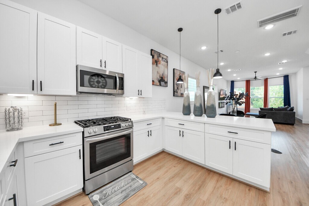 Welcome to Cavalcade Court! A beautifully designed home located in the heart of Northside Village,featuring 3 bedrooms and 3.5 baths. This MODERN 3-story residence offers an open floor plan with HIGH CEILINGS,elegant finishes,and a PRIVATE BACKYARD. Oversized windows and neutral tones bring in an abundance of natural light,creating a bright and inviting atmosphere throughout. The gourmet kitchen comes fully equipped with STAINLESS STEEL APPLIANCES,QUARTZ countertops,and extensive CABINETRY,making it perfect for both everyday living. The spacious owner’s suite boasts a PRIVATE BALCONY,walk-in closet,and spa-inspired bath with dual vanities and soaking tub. Secondary bedrooms on the 1st and 3rd floors each include en-suite bathrooms for added comfort and privacy. Conveniently located minutes from DOWNTOWN,the HEIGHTS,and major freeways for easy access across the city. All appliances are included! Call today to ask about the option of leasing this home fully furnished. MLS# 94888888