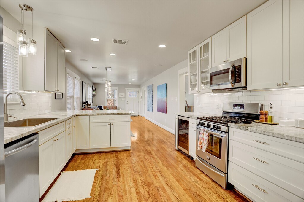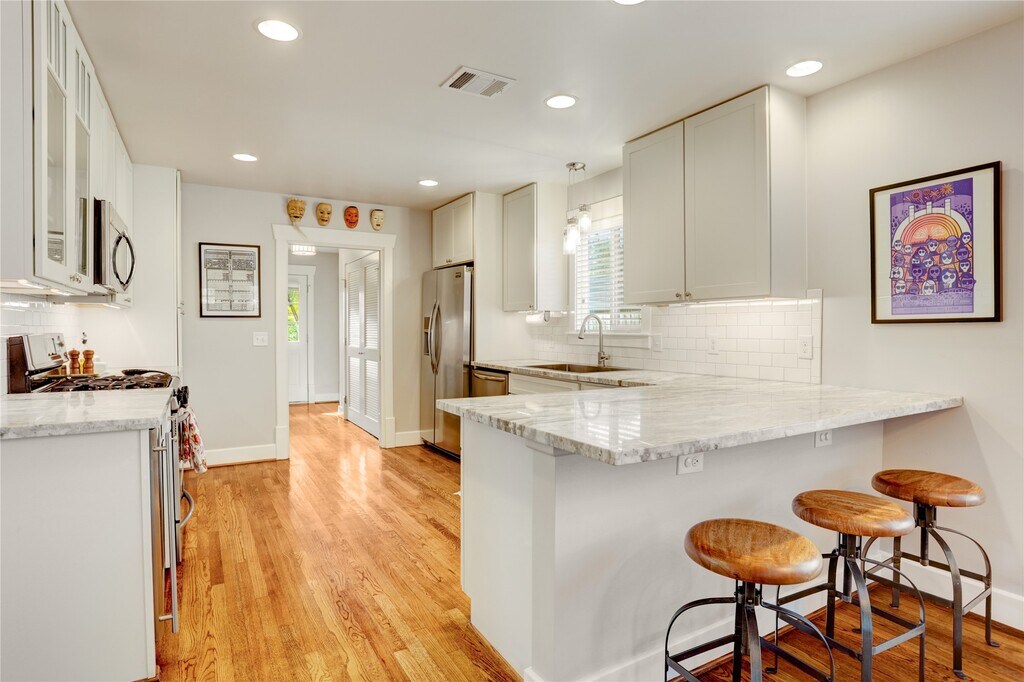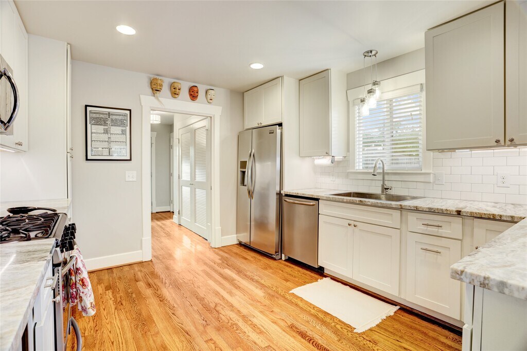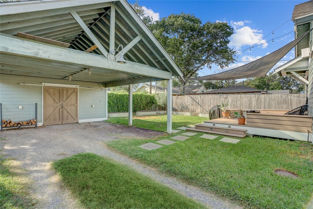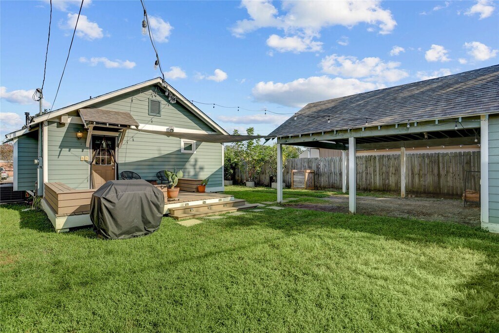 Stylishly Renovated Bungalow with Prime City Access. Step into this thoughtfully updated bungalow featuring a spacious,open-concept layout that seamlessly blends the living & dining areas with a chef-inspired kitchen. Designed for culinary enthusiasts,the kitchen showcases granite countertops,a sleek tile backsplash,a breakfast bar,and a gas stove. The serene primary suite offers a peaceful retreat,while the versatile mud room includes a built-in computer station,utility room,& abundant storage. Enjoy effortless indoor-outdoor living on the expansive wood deck overlooking a fully fenced backyard with an automatic drive gate. Additional highlights include: Two-car carport & storage shed for ample parking & gear,landscaped yard w/mature fruit trees,blocks from Metro rail for easy commuting & quick freeway access to downtown & Bush Intercontinental Airport. This home combines comfort & style ideal for modern urban living. Lawn care and pest control included in rent. MLS# 42106750