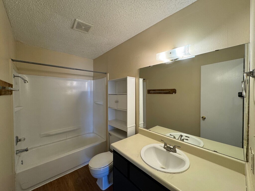 View 360 Virtual Tour: This 2 bedroom, 1.5 bath townhouse offers 868 square feet of space. The galley kitchen includes all-electric appliances, and just off the kitchen is the laundry room with washer and dryer hookups. There is a half bath downstairs for guests and a storage closet under the stairs. Upstairs is the full bathroom and both bedrooms, which have carpet and walk-in closets. There is a covered back porch with outdoor storage for an added amenity! Disclaimer: The furnishings or enhancements shown are AI-generated and intended for inspiration only. They may not reflect the actual scale, condition, or current features of the property.