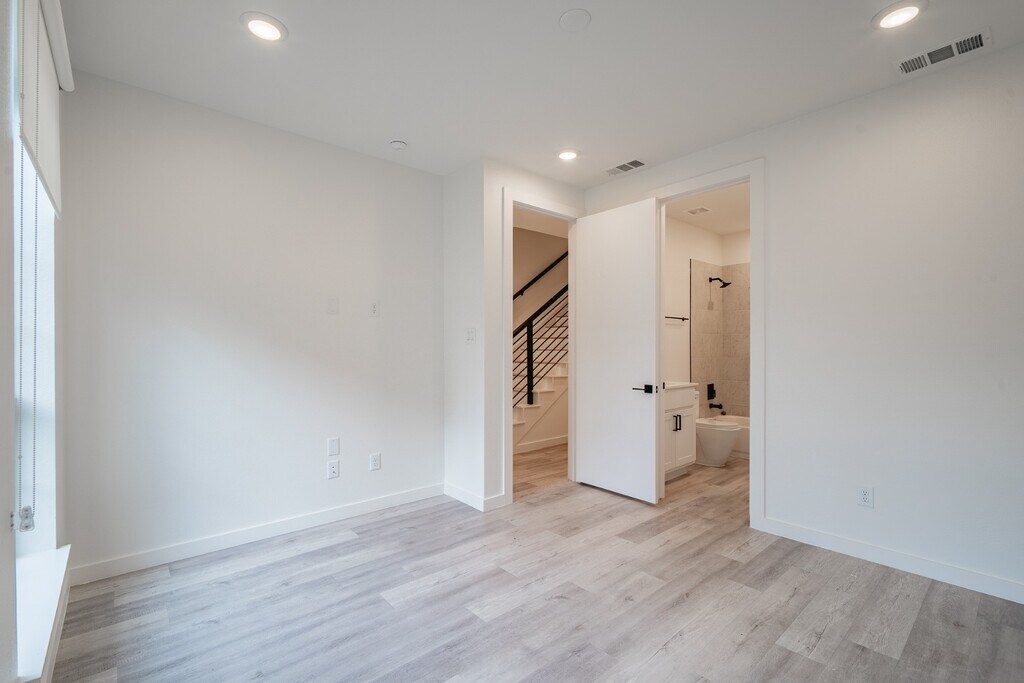 Gated, luxury, sleek, modern townhome, located in historic Old East Dallas near shops, restaurants, & entertainment including blocks from Dallas landmark Jimmy's Market and Deli! Radiating with natural light, This Front Unit features covered third story porches, private yards, patios & feature city Views. Efficient & open floor plans with thoughtful architectural design seen throughout. High end finishes with quartz counters, modern flooring, SS appliances, tankless water heater, spray foam insulation to keep utility bills low. A must see townhome that provides amazing amenities in a PRIME location between downtown, uptown, and Lower Greenville! Property will be fully enclosed & units has a private fenced yard. Pictures may be of a similar unit.