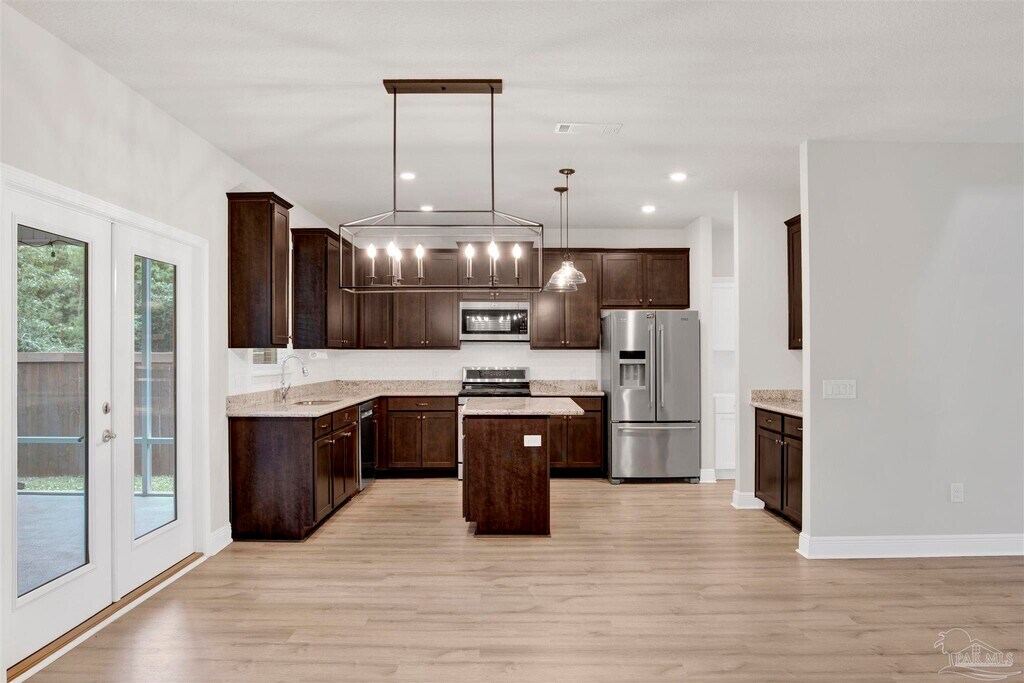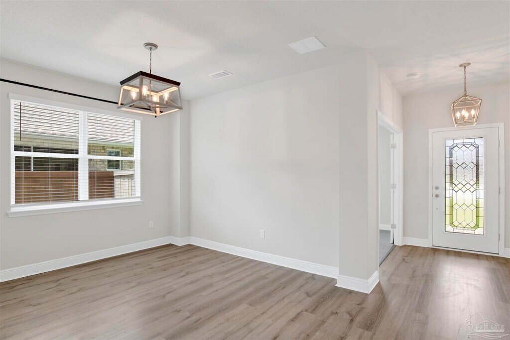 Welcome to this beautifully designed 4BD/2.5BA home located in the sought-after Sunrise community,just minutes from NAS Pensacola and the stunning Gulf Coast beaches. Step inside and discover an expansive floor plan that has space for a office or multiple sitting area,as well as a formal dining room perfect for hosting memorable gatherings. The main floor boasts an expansive open concept living area that seamlessly connects the kitchen,dining nook,and living room an ideal layout for everyday living and entertaining. The kitchen is a chefs dream,featuring ample cabinetry,a walk-in pantry,and a spacious island perfect for casual meals or meal prep. A half bathroom is conveniently located just off the main living area,along with additional under-stair storage. Upstairs,you'll find all bedrooms along with a versatile second living area ideal as a playroom,media room,or additional workspace. The primary suite offers a tranquil escape with a spacious bedroom,en-suite bathroom with double vanity sinks,a walk-in closet,a soaking tub,a separate shower,and a private water closet. The three additional bedrooms are generously sized and share a well-appointed bathroom with dual vanities and a private shower area. Step outside to your private backyard retreat,where you can unwind in the screened-in patio complete with a 2024 Hot Springs Relay hot tub or enjoy the open-air yard beyond. Landscaping and Hot Tub maintenance included! Tenant responsible for all utilities. Property will be held off market up to 14 days with Property Holding Fee with approved app. Lease Prep Fee of $75 is due prior to move in. Renters insurance is required. Sorry,this property is not pet friendly.