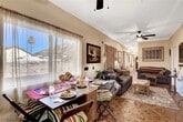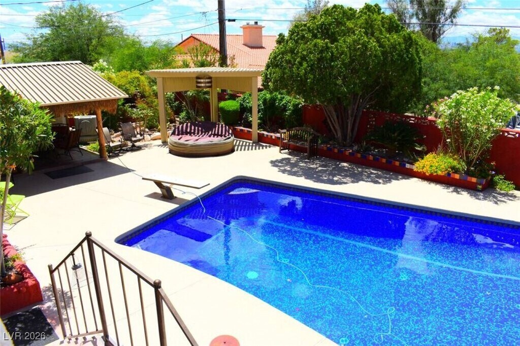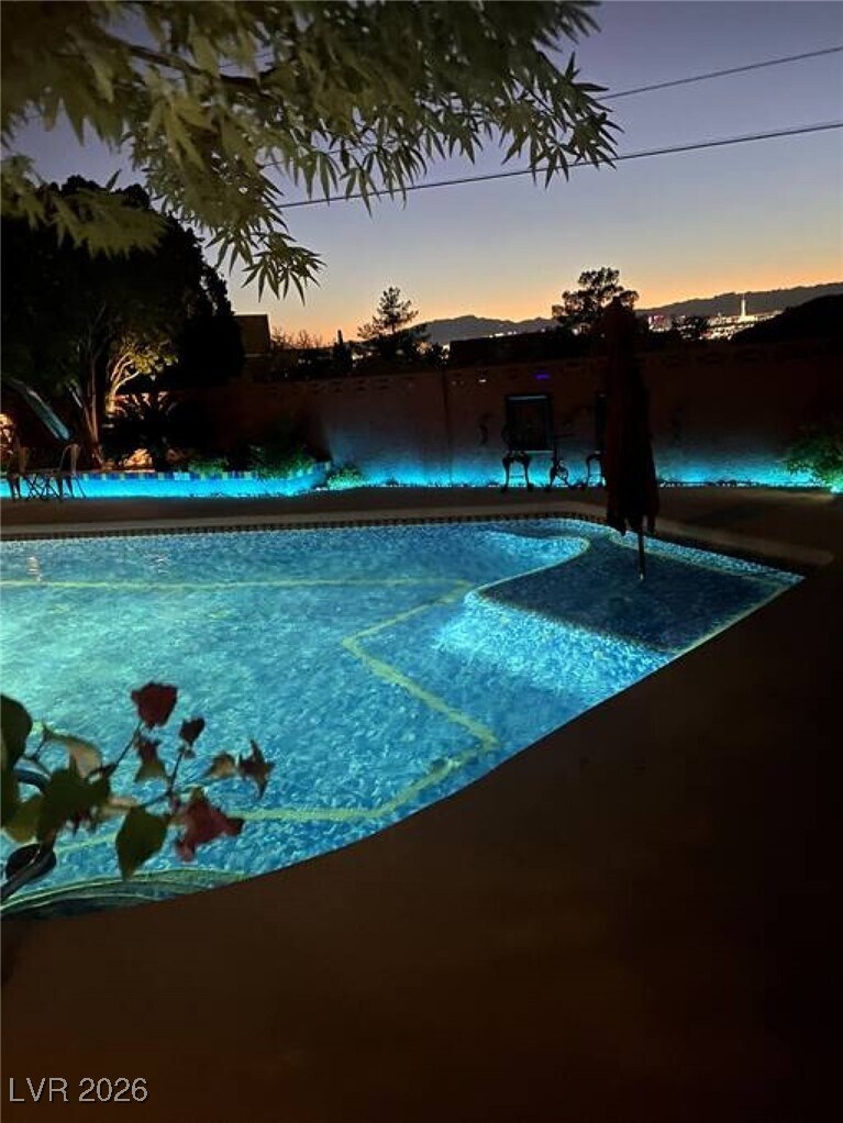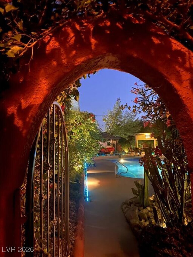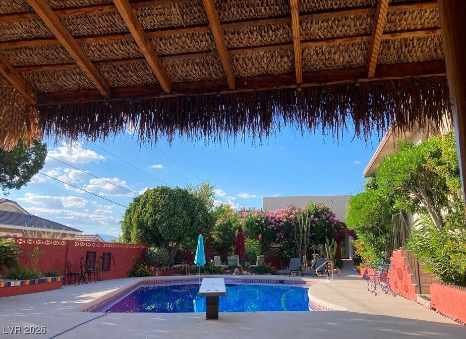 Charming 2 bedroom secluded home is nestled in Frenchman Mt foothills. Guests have full access to the pool area. Relax among the pool with lounging area, palapa and pergola. Enjoy the variety of plants & fountains.Find the neighborhood quiet & peaceful. The property overlooks downtown, mountains and the strip& is a short drive away.Nice hiking up Frenchman's Mountain &the Wetlands Park a few miles away. LOOK AT PHOTOS AND GO TO THE RIGHT HOUSE!!! Check out petroglyphs at Valley of Fire, hike at Red Rock Park, water slide parks in Henderson, Calabunga & Hollywood Park a mile away, zipline downtown. Adventuredome with rides & video arcade, helicopter tour to Grand Canyon, paddle boat tour of Lake Mead, the Hoover dam tour, year round ice rink at the Fiesta Rancho, watch a Golden Knights practice, GraviDy and Go carts. Fremont Street is 8 miles away (15 minutes) and The Strip is 12 miles away (20 minutes). ID and lease required. Guest to pay $125(covers power water & gas) per month.
