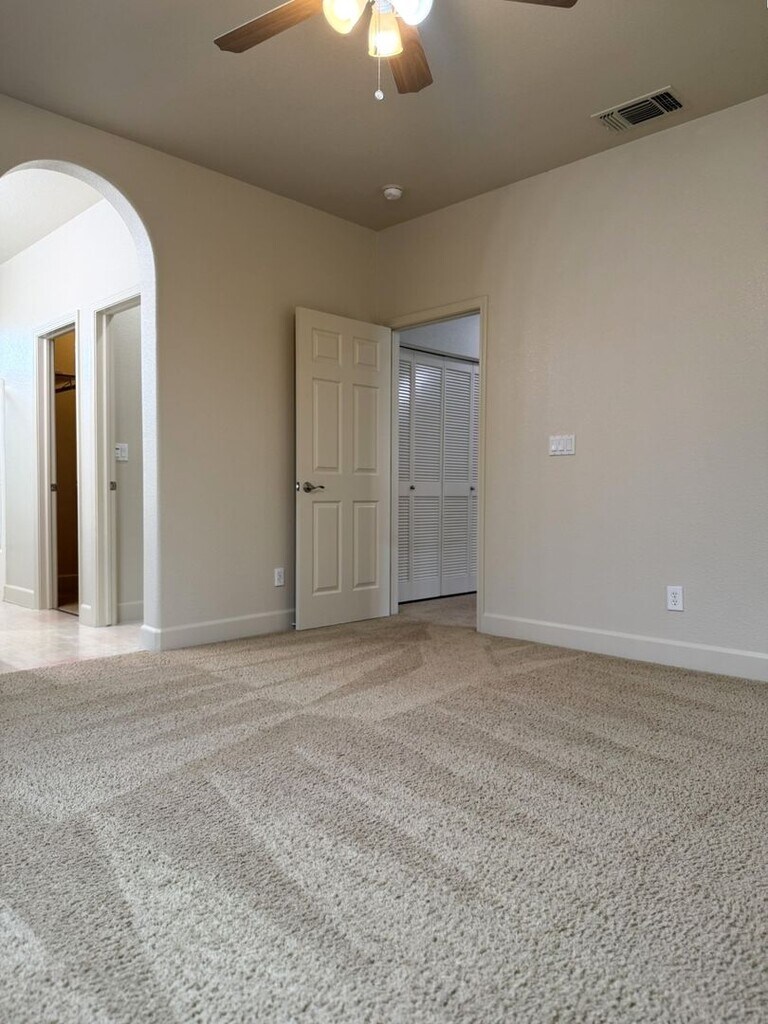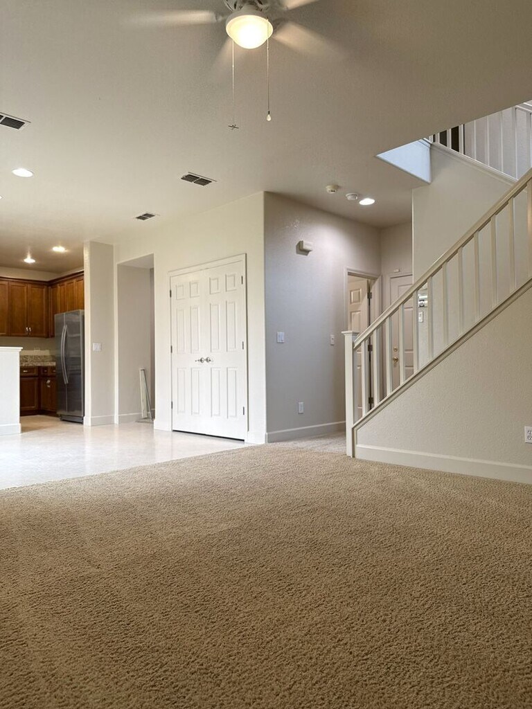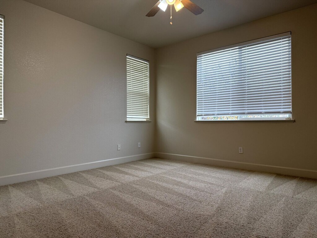 Two-story house located in Bellevue Ranch of North Merced. Very spacious and freshly painted interior. Located in a Cul-de-Sac court. Home has a large kitchen with granite counter tops and a family room. Stove, refrigerator, dishwasher, microwave, washer, and dryer included. Five rooms (4 bedrooms upstairs, and one BONUS room downstairs) with 2.5 baths. Available Now! Tenants responsible for all utilities and landscaping. No pets preferred.