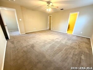 Well-maintained and spacious home offering nearly 2,000 square feet of living space and one of the largest floor plans in the neighborhood. Conveniently located with easy access to Loop 410, 1604, and I-10, and close to shopping, dining, and Randolph Air Force Base. The open floor plan features abundant natural light, with French doors that open to a covered patio and oversized backyard-ideal for everyday living and entertaining. Recently installed vinyl plank flooring in the kitchen and dining areas adds a clean, modern touch. All kitchen appliances are included. The primary suite is generously sized and includes a large walk-in closet. Secondary bedrooms are also spacious, each with its own walk-in closet. Lawn maintenance is included in the rent, providing added convenience and value. Available for 12-14 month leases. No pets for this rental.