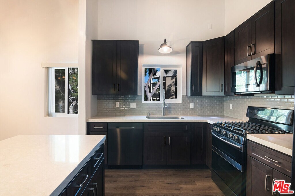 Stunning top floor, corner unit with cathedral ceilings and private balcony in a beautiful gated residential community. Beautifully remodeled with an open floor plan, this 3 bedroom, 2 bath condo offers you a spacious home to call your own. The great room includes a large living room, dining area and beautifully remodeled center island kitchen with quartz countertops and stainless steel appliances. There is a very private balcony off the living room with a closet for storage, perfect for your morning coffee or relaxing glass of wine at the end of a long day. There is a large hall closet for linens and coats. The primary suite with cathedral ceilings has a large, custom, built-in closet plus it's own newly remodeled three-quarter bath. There are two additional spacious bedrooms and a newly remodeled full hall bath. Enjoy the comfort of dual paned windows throughout. There is covered parking for 2 cars just downstairs. The mailboxes and community laundry are also just downstairs. You'll love all the amenities including 2 pools, spa, a fitness center, clubhouse with ping pong table, sauna, large grassy area, beautifully landscaped walkways throughout the complex and the security of a guard gated complex. Shopping and restaurants are only a couple of blocks away as are several of Culver City's finest parks. Culver City's award winning schools and the newly remodeled public library are very close by. Enjoy all the outdoor activities Culver City has to offer including the bike path that will take you all the way to the beach and the Baldwin Hills Overlook, popular for it's walking path and stairs. Offering an ideal location with a spacious, light filled home and resort like living, this home is available for immediate occupancy and it's pet friendly. MLS# 26644995