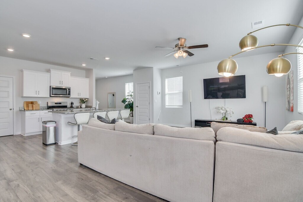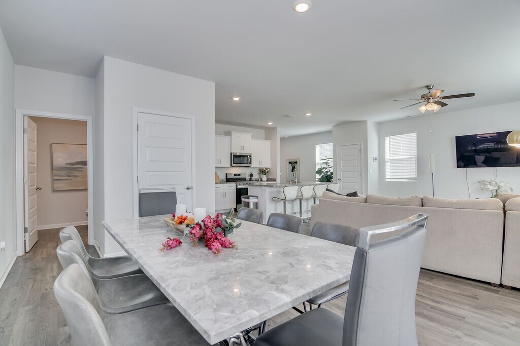 This new home in Southwind Villages features 4 bedrooms 2.5 baths 2176 SqFt, two story home, backing up to the golf course. Granite countertop kitchen overlooks the living and dining area. Spacious Great room concept with half bath on Main. Walk in Kitchen Pantry. Granite countertops included in ALL bathrooms. Large Primary suite includes a sizable walk-in closet and ensuite bathroom with linen closet. Three cozy secondary bedrooms with a share second bathroom. The loft at the top of the stairs provides extra space for work and play. Convenient upstairs Laundry. This neighborhood has a fully stocked pond for fishing, community pool, and walking trails!