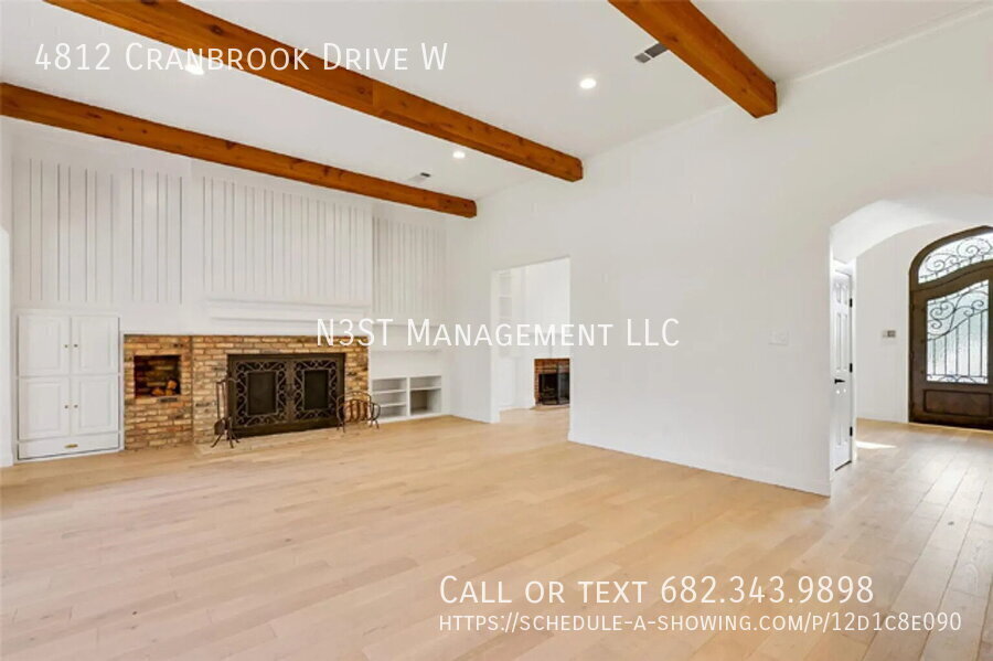 Welcome to elegant 4-bedroom, 5.5-bath, 4,618 sq. ft. home nestled in the picturesque community of Cranbrook Estates. Set on an expansive lot with beautiful views, this two-story residence showcases custom finishes, multiple staircases and fireplaces, hardwood floors, and cathedral ceilings throughout. Enjoy two spacious living areas, a formal dining room (each with its own fireplace), and a chef’s kitchen featuring quartz countertops, stainless-steel appliances, and a walk-in butler’s pantry—perfect for entertaining or everyday living. The first-floor primary suite offers a spa-inspired bath with dual vanities, a soaking tub, custom closet cabinetry, and private access to the backyard. Upstairs, you’ll find three additional bedrooms, each with an ensuite bath, plus a large game room ideal for family or guests. Step outside to your private retreat featuring a sparkling pool, patio, and mature trees, with no neighbors behind for added privacy. Additional highlights include a three-car garage with workshop space and a gated driveway. Located in the desirable Grapevine-Colleyville ISD, just minutes from shopping, dining, and DFW Airport. Come see this exceptional home — luxury living at its finest!Equisite Staircases Fence Gated Access Grand Entryway Quartz Countertops Solid Hardwood
